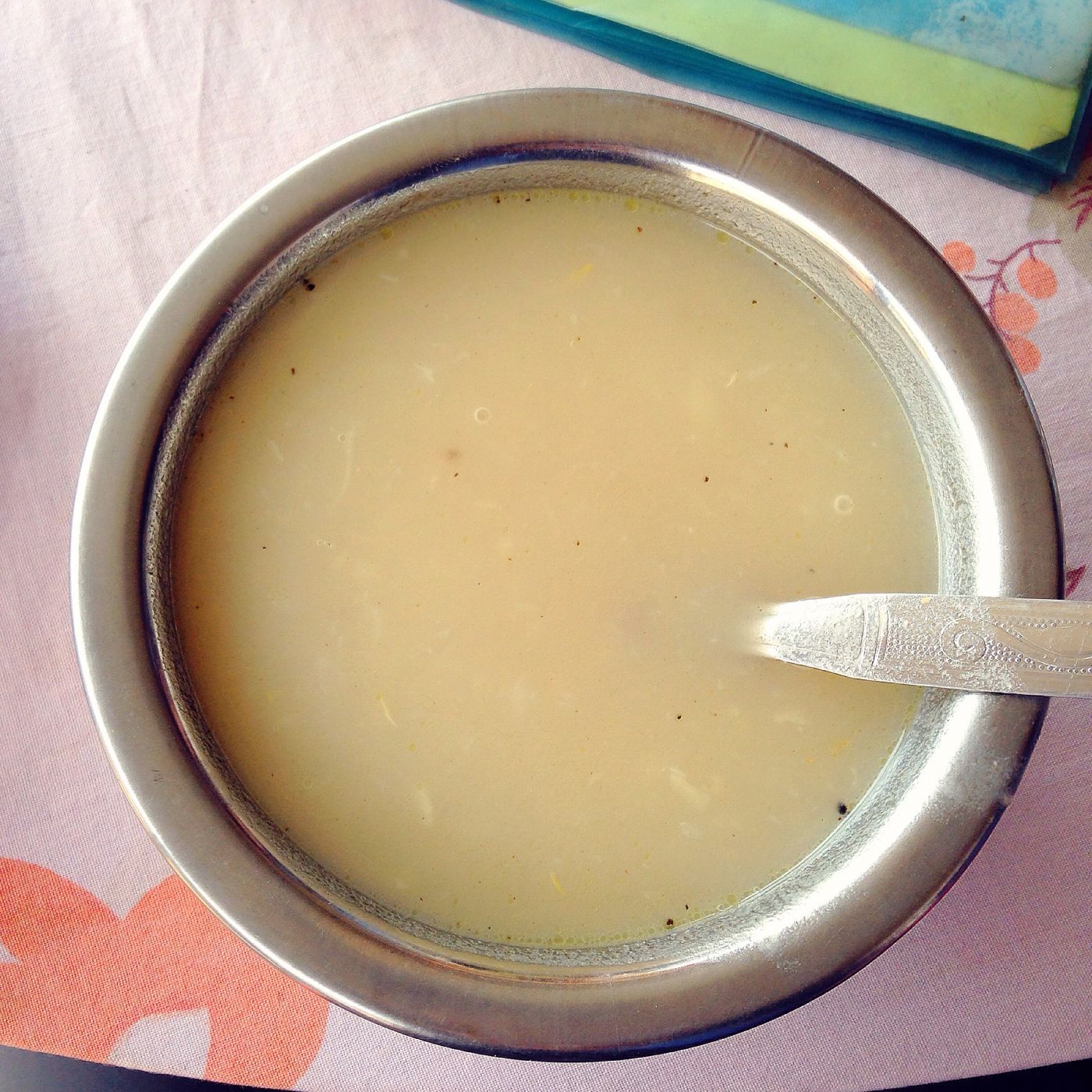 แต่...มันคือซุปใสจ้า และมีแค่น้ำซุปจริง ๆ ไม่มีเนื้อ ไม่มีหนัง ไม่มีแม้แต่หอมใหญ่เป็นชิ้น ๆ มีแต่วิญญาณหอมใหญ่ล่องลอยอยู่ เอาจริงคือตกใจกับอาหารมาก แต่ก็แบบ สั่งมาแล้วอ่ะ สั่งเพิ่มก็เสียตังอีก กินไปเหอะ เพื่อนอีกสามคนก็ตกใจเหมือนกัน และไม่เชื่อว่าเรากินได้ เราก็บอกว่าไอโอเค ไอกินได้ ไอกินน้อย (แม้ในใจจะแบบแย่แน่)