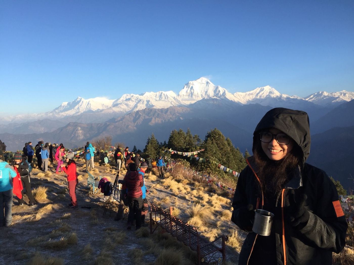 แต่พอไปถึงจุดชมวิว โทรศัพท์ที่รักก็ทนความหนาวเย็นไม่ไหว ดับไปต่อหน้าต่อตา ไม่เหลืออะไรไว้ให้เราถ่ายรูปเลย วิวที่นี่สวยมาก เป็นวิวพาโนรามาของภูเขาหางปลา โชคดีที่ไรอันเห็นใจ เลยถ่ายรูปเรากับที่นี่ให้หนึ่งรูป