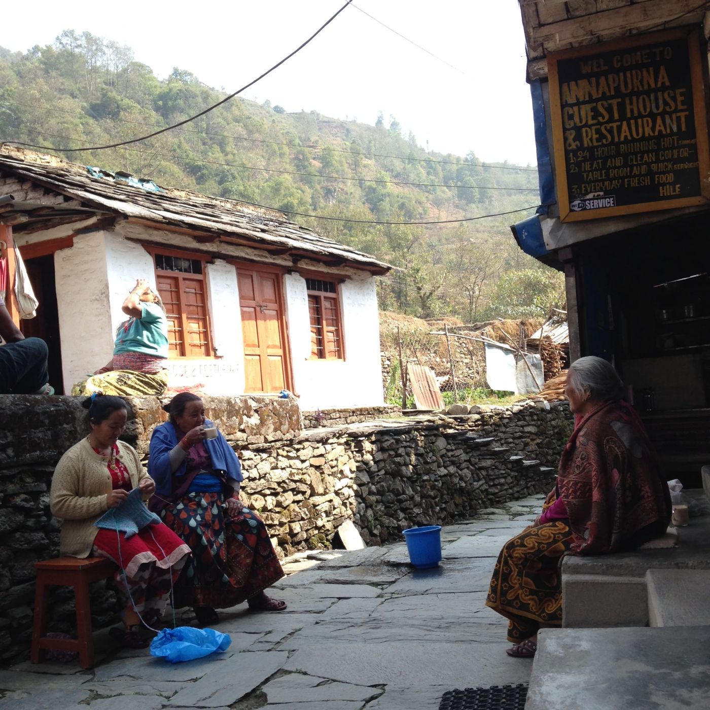 ดูวิวพาโนรามาจนสมใจก็บอกลา Poon Hill และเดินกลับที่พัก เราเพิ่งเห็นว่าวิวที่พักเราสวยมากตอนเช้าเนี่ยแหละ เพราะเมื่อวานหมอกหนามาก ตอนมาถึงมองไม่เห็นอะไรเลย ตรงลานที่ไปยืนดูดาวเมื่อคืนนี่มองเห็นหิมาลัยได้รอบ ๆ เลย