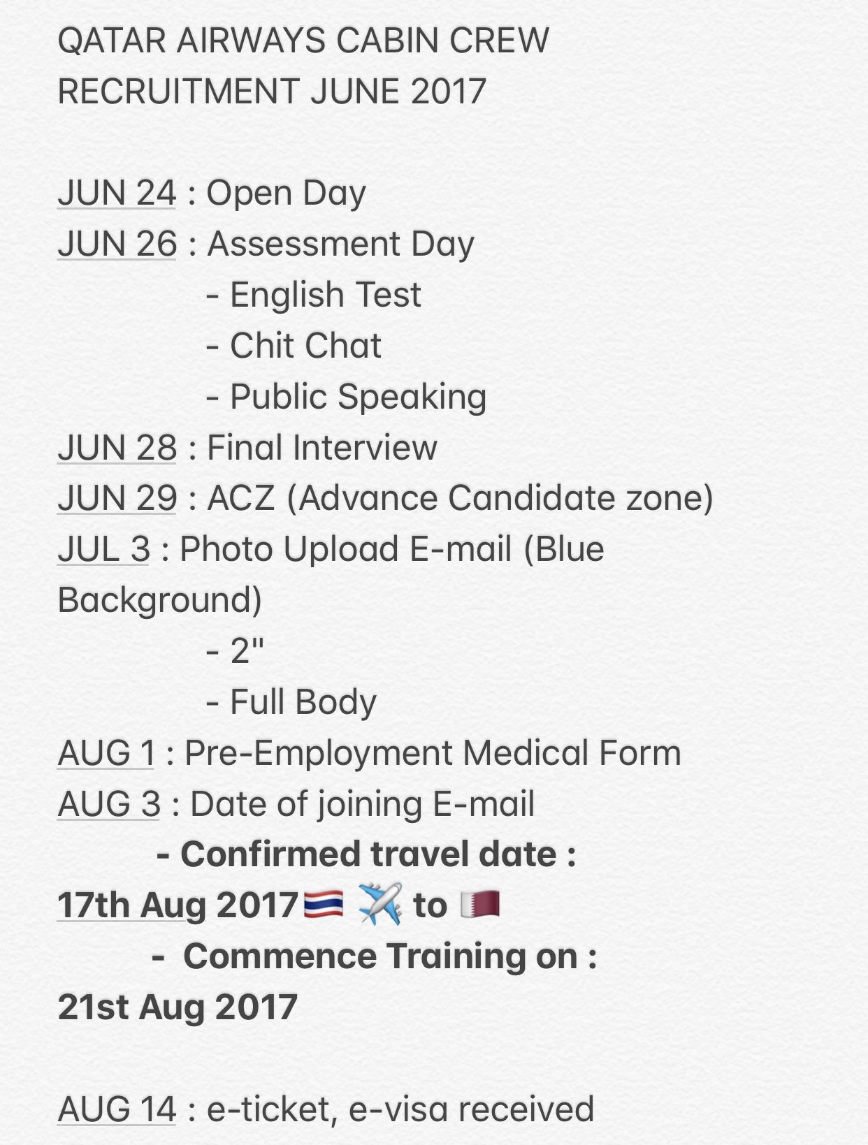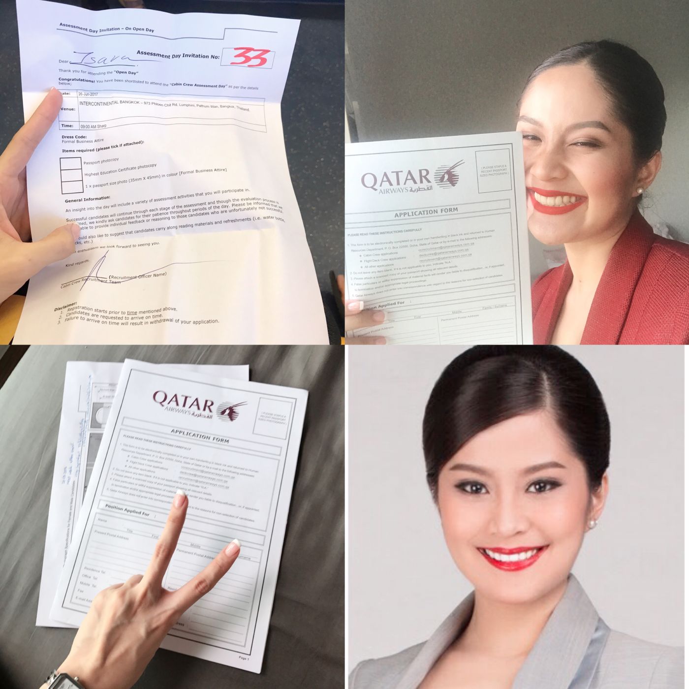 ขอบอกก่อนว่าก่อนที่เราจะลงสนามสมัครแอร์ (ครั้งแรกและครั้งเดียว) เราทำงานเป็นสถาปนิกมา 1 ปี อยู่ดีๆก็เกิดความติ๊ดส์ ประจวบเหมาะกับกาต้ามาเปิด open day ที่ รร อินเตอร์คอนฯ ก็เออ...เอาวะ ลองไปดูมั้ย ในใจตอนนั้นคิดแค่ถ้าได้นะ ฉันจะไปเที่ยวรอบโลกเลย แค่นั้นจริงๆจึงเป็นเหตุให้เตรียมเอกสาร ไปถ่ายรูปสมัครแอร์โดยเฉพาะ เพื่อไป walk in ในวันที่ 24 June 2017