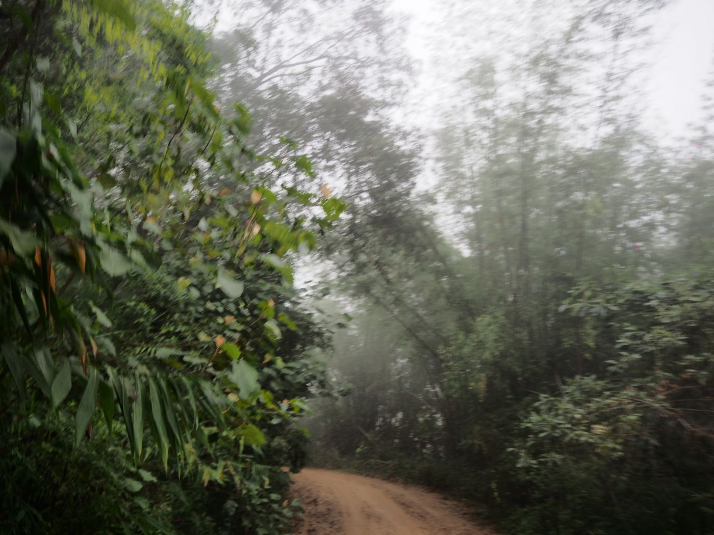 นี่ทางขึ้น แรกๆ พักหลังๆ จะเป็นดินลูกรังและหมอกหนามากหนาวละอองหมอกกระเด็นใส่หน้าไปอีก ผมเปียกหมด
