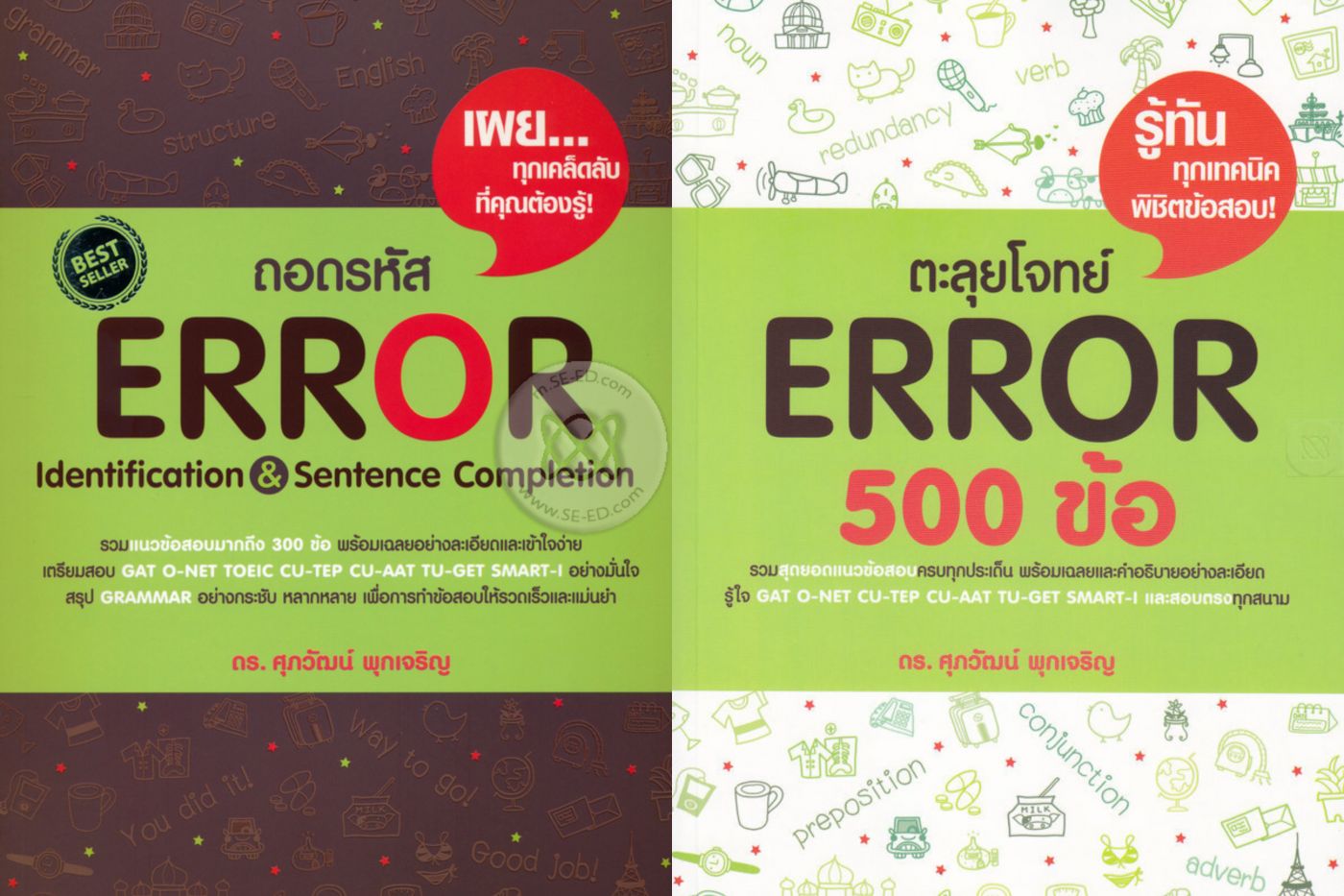 ถอดรหัส Error & ตะลุยโจทย์ Error 500 ข้อ: ตามชื่อหนังสือเลยค่ะ error ที่ค่อนข้างเป็นจุดอ่อนภาษาอังกฤษของเราเมื่อก่อน ทำสองเล่มนี้ไปแล้วก็ยังคงเป็นจุดอ่อนอยู่ หยอกกก เราก็เข้าใจพอยท์มากขึ้นนะ เพราะต้องอ่านไวยากรณ์ด้วย ทำ error ด้วย มันก็ช่วยให้เข้าใจมากขึ้นอะ ในเล่มคือเราจำไม่ค่อยได้แล้วแต่เล่มซ้ายครึ่งแรกเป็นสรุปพอยท์ว่าส่วนใหญ่แล้วจะออกไวยากรณ์หรือโครงสร้างประโยคแบบไหน ครึ่งหลังเป็น test ส่วนเล่มขวาคือ test ล้วนเลย ซึ่งเราซื้อเล่มนี้มาก่อน เจอเทสชุดแรกไปแล้วอ๊องเลย เพิ่งรู้ตัวว่าอ่อน error ขนาดนั้น แต่ก็ฝืนทำต่อจนจบเล่มกับคะแนนอันน้อยนิดสุด ๆ แต่เราก็แนะนำเช่นกันนะคะ ทั้งสองเล่มเลย หรือใครที่มีพื้นฐานดีอยู่แล้วเอาแค่เล่มขวาก็พอ ถึงพาร์ท error ในข้อสอบจริงทั้งแกทและโอเน็ตจะมีไม่เยอะแต่ก็สามารถเป็นพาร์ทเก็บคะแนนได้ถ้าเราเข้าใจนะ