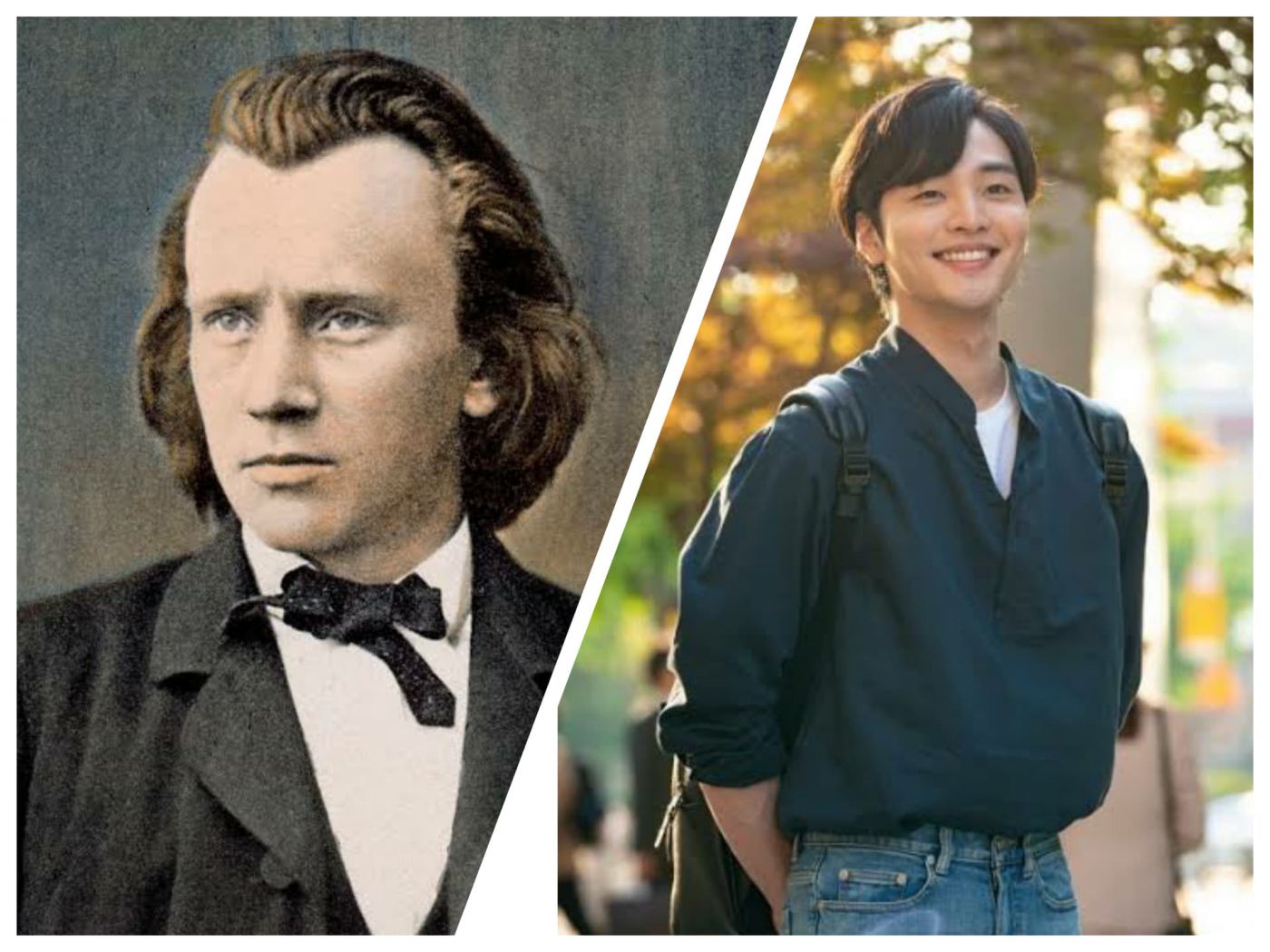 หลังจากรู้จักบรามส์พอสังเขปแล้ว ตัวละครพระเอกของเราอย่าง จุนยอง เนี่ยมีความคล้ายกับบรามส์อย่างมาก เพราะว่าทั้งบรามส์และจุนยองนั้นเป็นคนที่เพรียบพร้อมด้วยความสามารถที่เรียกได้ว่าเป็นพรสวรรค์ที่มีติดตัวมาตั้งแต่เกิด แต่พวกเขากลับมีครอบครัวที่มีฐานะยากจน ทำให้พวกเขาไม่สามารถเล่นดนตรีที่พวกเขารักต่อไปได้ จนกระทั่งได้รับโอกาสจาก โรแบร์ท ชูมัน (Schumann) และภรรยาของเขา คลาร่า ที่มองเห็นพรสวรรค์ในตัวของบรามส์จึงได้ให้การสนับสนุนอย่างเต็มที่ซึ่งก็ถูกตีความมาเป็นการที่ตัวเอกของเรานั้นได้รับโอกาสจากตระกูลของ อีจองคยอง และต่อมาชูมันก็ป่วยและเสียชีวิตไป บรามส์จึงตัดสินใจที่จะทุ่มเทดูแลลูกๆ คนที่ยังอยู่และทุ่มเททั้งชีวิตของตนให้กับคลาร่าราวกับว่าเขารักเธอ ซึ่งส่วนนี้ก็ไปตรงกับที่พระเอกของเราพยายามดูแลอีจองคยองและเริ่มสับสนว่าเขารักเธออยู่รึเปล่า แต่อีจองคยองนั้นเป็นแฟนของเพื่อนจุนยองจึงทำได้แต่มองเธอและรักเธอไม่ได้จุนยองจึงพยายามลบความรู้สึกที่เกิดขึ้นภายในจิตใจของเขาออกไป ซึ่งก็ตรงกับการที่คลาร่านั้นเป็นภรรยาของชูมันที่เปรียบเสมือนอาจารย์ของบรามส์ บรามส์จึงทำได้เพียงดูแลและคอยมองคล่าร่าอยู่ห่างๆ เช่นเดียวจุนยองที่ไม่สามารถรักอีจองคยองได้