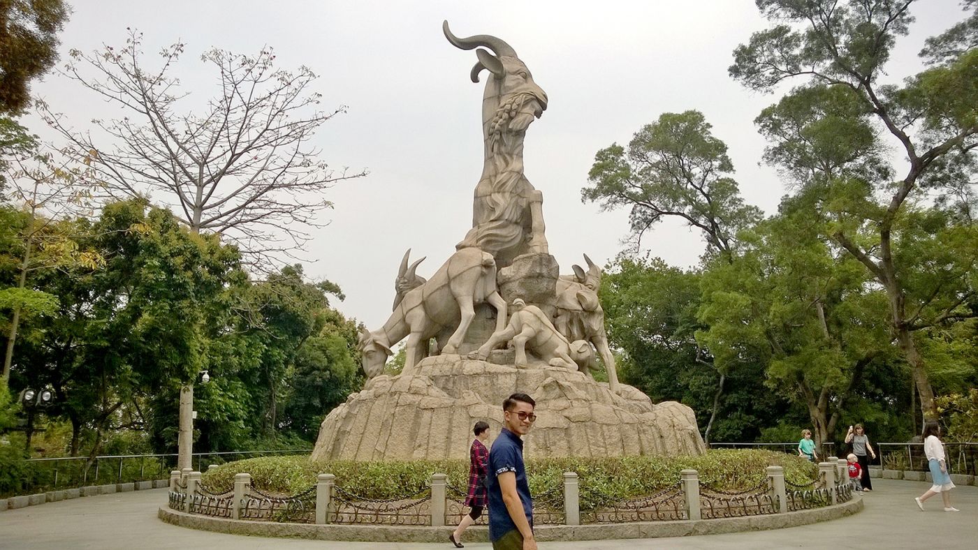 ในสวนนี้มีรูปปั้นห้าแพะใหญ่