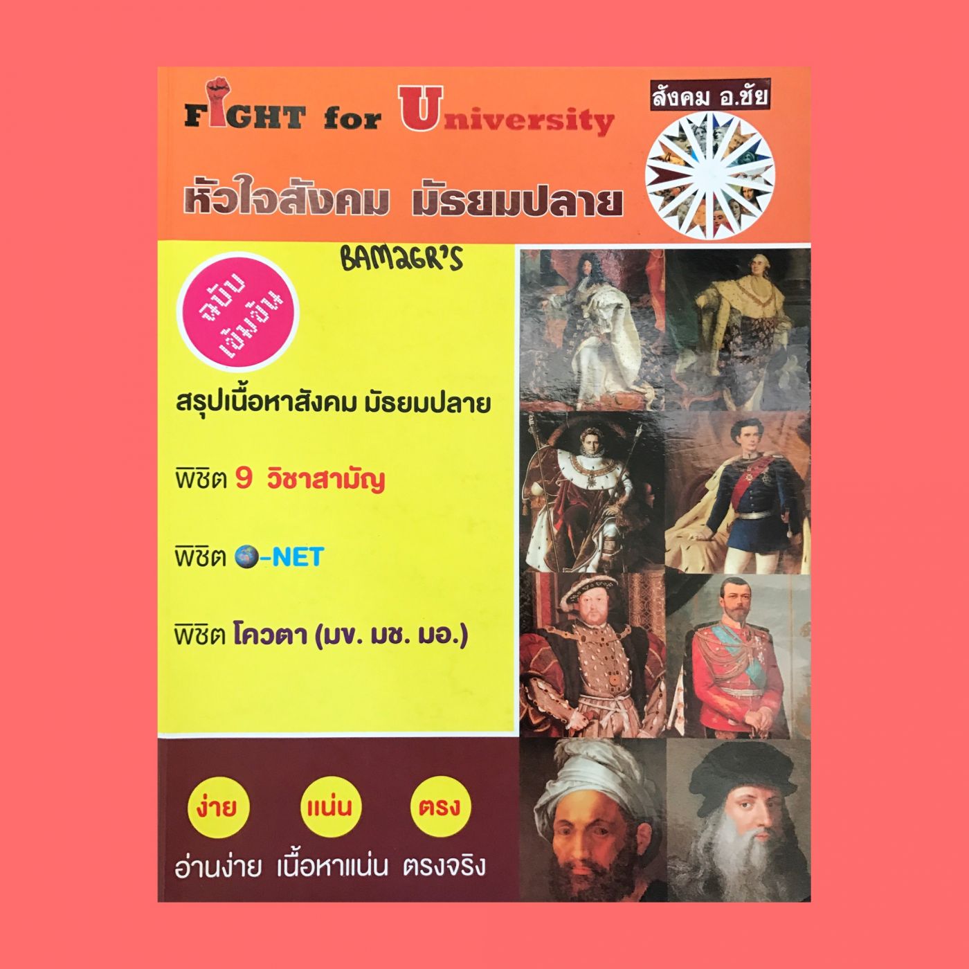 หัวใจสังคม มัธยมปลาย (อ.ชัย) - เล่มนี้เราชอบตรงที่มันมีตัวหนังสือเยอะดี (ไม่ได้อ่านผิดนะ ไม่ต้องอ่านใหม่ 5555) คือคนอื่นอาจจะชอบหนังสือที่มีรูปเยอะๆ มีสีเยอะๆ แต่เราชอบไฮไลท์เอาเองมากกว่า ถ้าอยากจะอ่านเล่มนี้ เราแนะนำว่าควรมีพื้นฐานมาสักหน่อยก่อนอ่าน ไม่งั้นอาจจะไม่เข้าใจและเบื่อเล่มนี้ได้ เพราะเนื้อหาเขาเยอะและละเอียดมากๆ แต่เรารู้สึกว่ามันเป็นข้อดีนะ เพราะวิชาสังคมมันจะออกอะไรก็ได้ ถูกมั้ย?