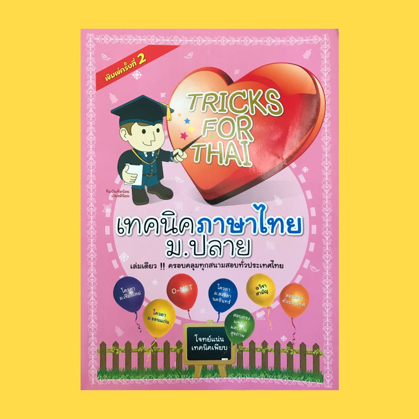 เทคนิคภาษาไทย ม.ปลาย - เล่มนี้แนะนำมากกก เพราะเหมาะกับทั้ง O-NET และวิชาสามัญ ข้อดีของเล่มนี้ก็คือ มีแบบฝึกหัดเยอะสะใจ แต่ในส่วนเนื้อหาอาจจะไม่ได้อธิบายละเอียดเท่าเล่มข้างบน เล่มนี้จะออกแนวเป็นสรุปมากกว่า ใครที่พอมีความเข้าใจพื้นฐานแล้วอาจจะมาลองอ่านเล่มนี้เลยก็ได้ค่ะ (แต่แอบสารภาพนิดนึึงว่าอ่านเล่มนี้ไปนิดเดียวเอง เพราะเราเจอเล่มนี้ก็ตอนใกล้สอบแล้ว /น้องๆ จงอย่าเป็นแบบเรานะ ถถถถ)