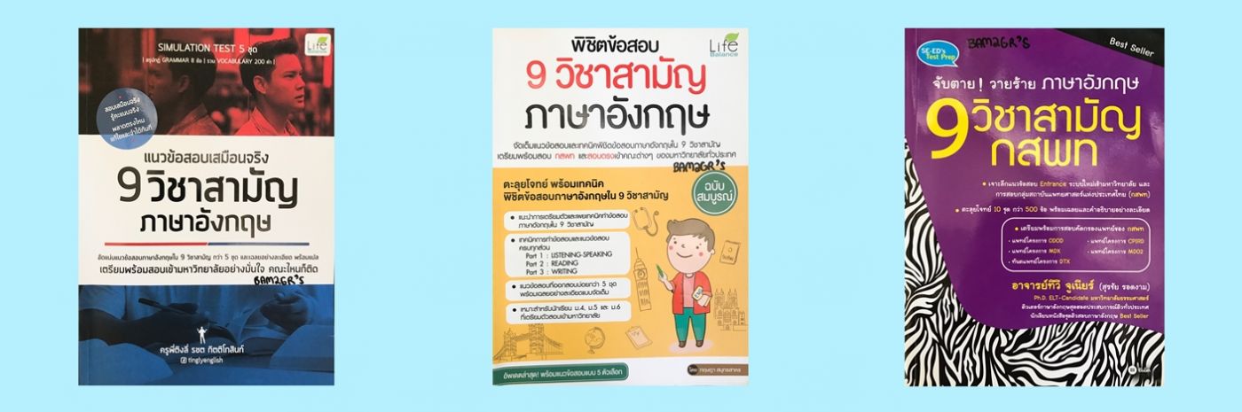 มาเริ่มกันในส่วนของวิชาภาษาไทย หนังสือที่เราใช้อ่านมีแค่ 3 เล่มนี้จริงๆ เห็นแล้วอาจจะงงว่าอ่านแค่ 3 เล่มนี้แล้วได้ 90 เลยหรอ ต้องบอกเลยว่าเนื่องจากภาษาไทยของ 9 วิชาสามัญค่อนข้างเน้นการคิดวิเคราะห์มากกว่าจำหลักภาษา ดังนั้นเราเลยรู้สึกว่าอ่านแค่นี้ก็เพียงพอแล้ว ไปเน้นทำข้อสอบเก่าดีกว่า พอทำข้อสอบเก่ามากๆจะรู้เลยว่าวิชาภาษาไทยของ 9 วิชาไม่ยากอย่างที่คิด!