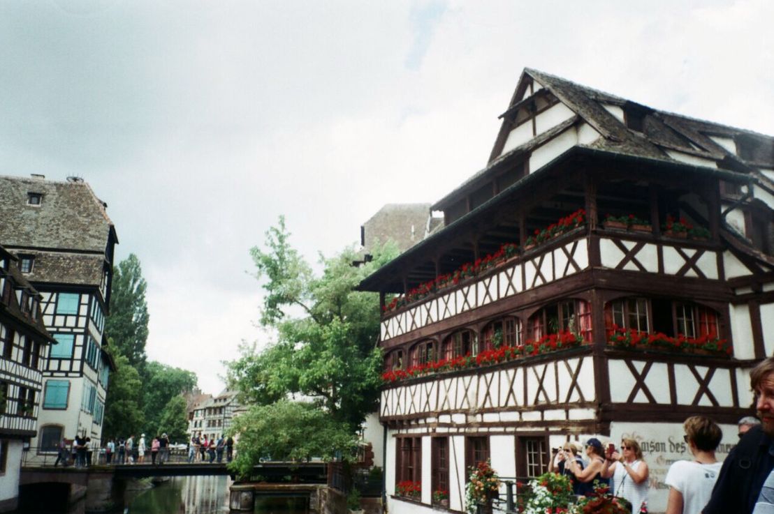 เมือง Strasbourg เนี่ยเป็นเมืองที่ติดกับประเทศเยอรมัน อยู่ในแคว้น Alsace (อัลซาซ) คือประเทศฝรั่งเศสเขาจะมีการแบ่งเป็นแคว้นต่างๆ ซึ่งแคว้น Alsace จะขึ้นชื่อด้านตลาดคริสต์มาสต์ (Marché de Noël) กับ Wine Road ค่ะ เมืองนี้เคยเป็นเมืองขึ้นของเยอรมันในสมัยก่อนด้วย สถาปัตยกรรมตึกรามบ้านช่องก็จะคล้ายคลึงกับเยอรมัน และชื่อหมู่บ้านนอกเมืองต่างๆก็เป็นภาษาเยอรมันเยอะ รวมถึงชาวฝรั่งเศสแถบชายแดนก็จะพูดภาษาฝรั่งเศสติดสำเนียงเยอรมันด้วย (ฟังยากหน่อย)