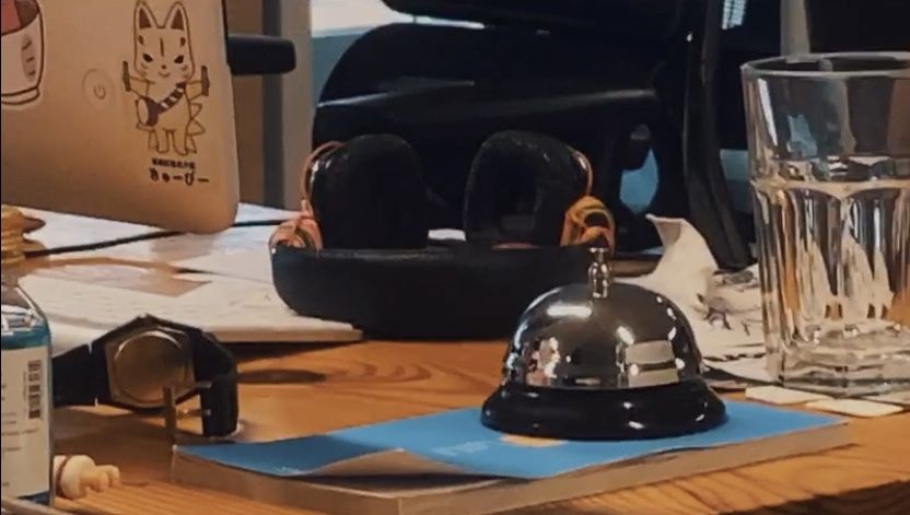 ความขยันของพี่ ๆ ที่นี่ไม่ได้มีเพียงความขยันในการลงไปต่อคิวที่ร้านทวีสุข-ร้านข้าวแกงข้างล่างออฟฟิศ ตั้งแต่พี่เจ้าของร้านเพิ่งเปิดร้านในเวลา 16.00 เท่านั้น แต่ยังมีเรื่องของการให้ความสำคัญกับความตลกมาก ๆ จนต้องมีกริ่งไว้ใช้สำหรับตบมุกโดยเฉพาะ