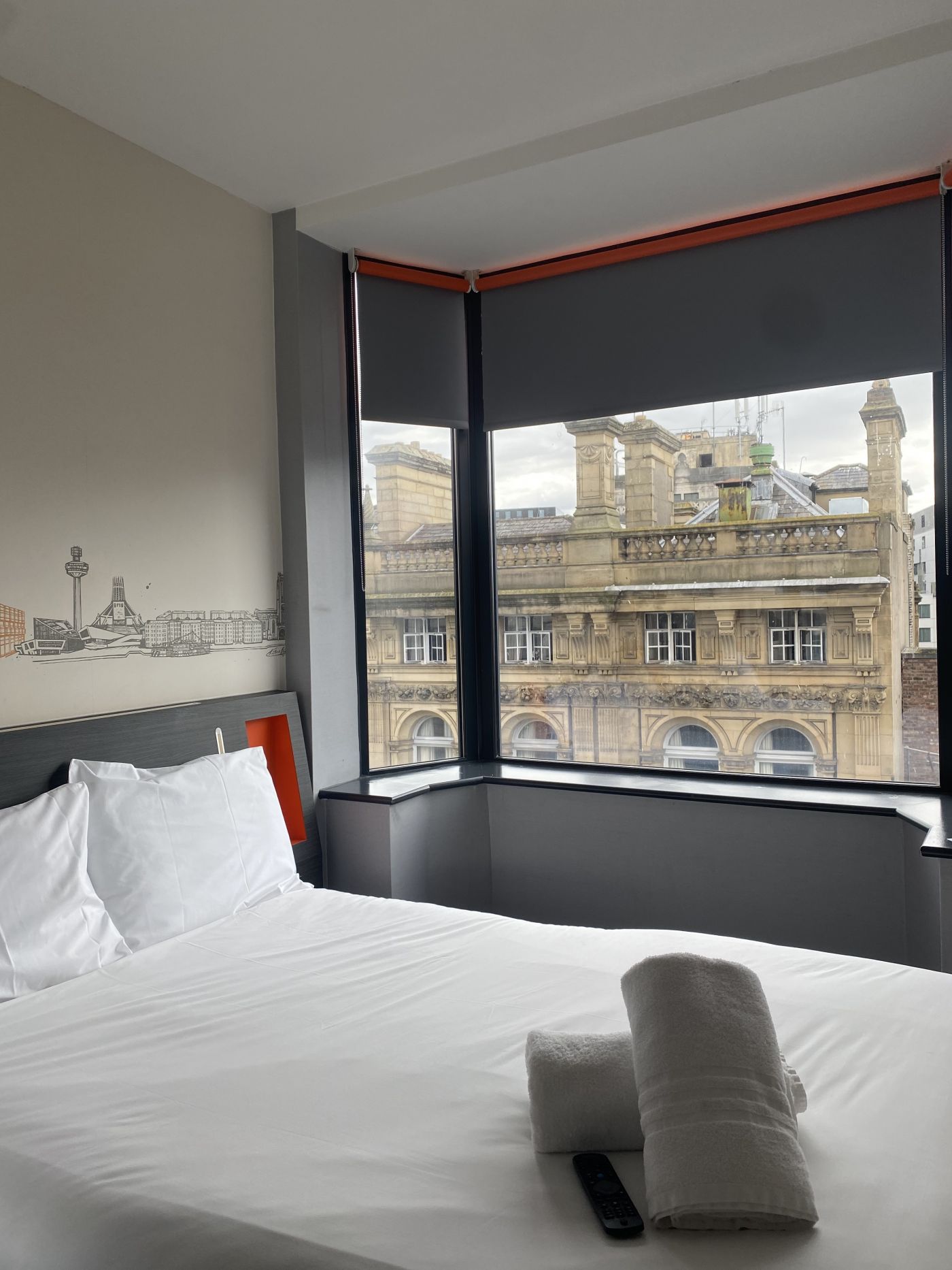 หมดวันเราก็กลับมาCheck-inที่Easy hotelราคาคืนละ 32GBP ของเรา จองจากBooking.com พอไปถึงก็ทำเรื่องขอบัตรแสกนเข้าห้องง่ายๆแปปเดียวเสร็จ พนักงานที่นี่มีสำเนียงที่ฟังยากกว่าคนลอนดอน เป็น Local British แบบจัดๆเลย และดูวิวจากห้องสิคะะะะ