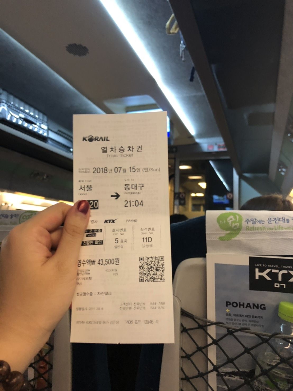 การเดินทางของเราเริ่มต้นจากสถานีรถไฟความเร็วสูง (KTX) ดงแดกู (Dongdaegu) เวลา 7 โมงกว่า ใช้เวลากว่าสองชั่วโมงก็เดินทางถึงสถานีโซล (Seoul Station) ค่าเดินทาง 43,500 วอน