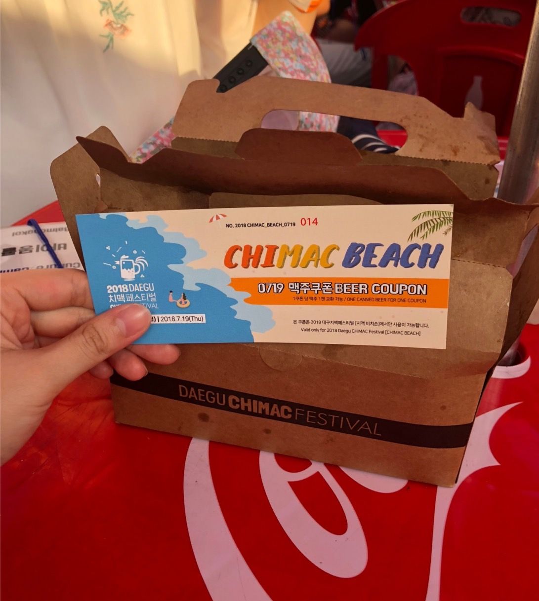 และกิจกรรมที่เรารอคอยที่สุดในสัปดาห์นี้คือ เทศกาลชีแม็ก (치맥) หรือเทศกาลกินไก่ทอดกับเบียร์นั่นเอง แดกูเป็นเมืองขึ้นชื่อในเรื่องนี้ ก่อนจะได้มางานนี้ภาพในหัวเราคือนั่งปิกนิกในสวนแล้วกินไก่กับเบียร์ แต่พอมาสถานที่จริงปรากฎว่ามีโต๊ะให้นั่งกิน มีซุ้มดีเจเล่นเพลง และยังมีคอนเสิร์ตอีกด้วย จริงๆแล้วก็เป็นงานที่จัดในสวนสาธารณะแหละ เป็นงานที่ใหญ่และกว้างมากๆมีหลายโซนให้นั่งกิน