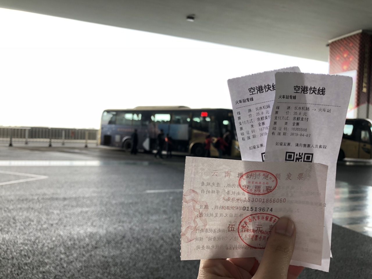 วันแรกเรานั่งเครื่องบินจากกรุงเทพไปถึงคุณหมิงประมาณเกือบบ่ายโมง ผ่านตม.แล้วก็ออกมาขึ้นรถบัสตรงหน้าอาคาร เค้ามีการจัดการที่ค่อนข้างดี สนามบินไม่ใหญ่มาก มีป้ายบอกว่าบัสสายไหนไปตรงไหนบ้าง เรานั่งบัสสาย 2 หน้าเกท 3 ไปสถานีรถไฟเพราะจะนั่งรถไฟความเร็วสูงไปลี่เจียง
