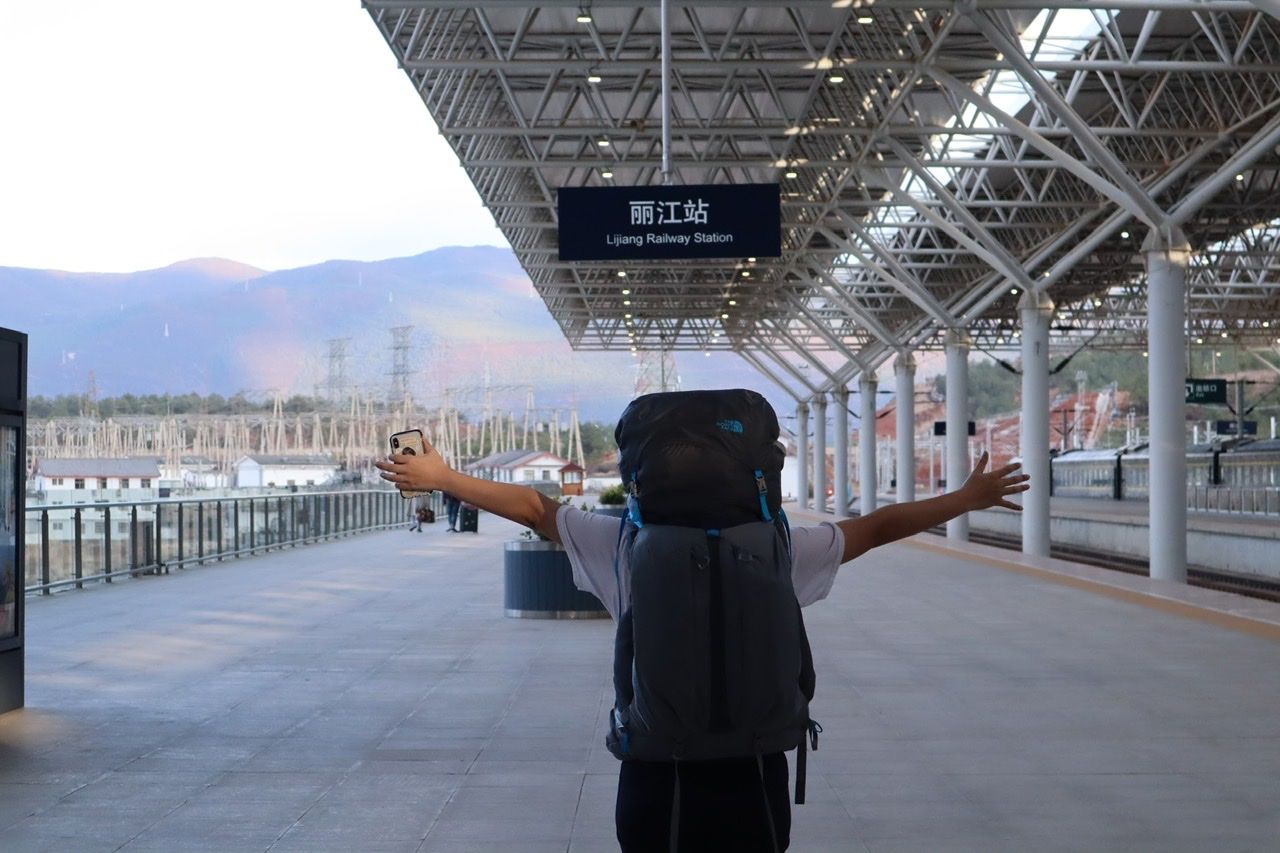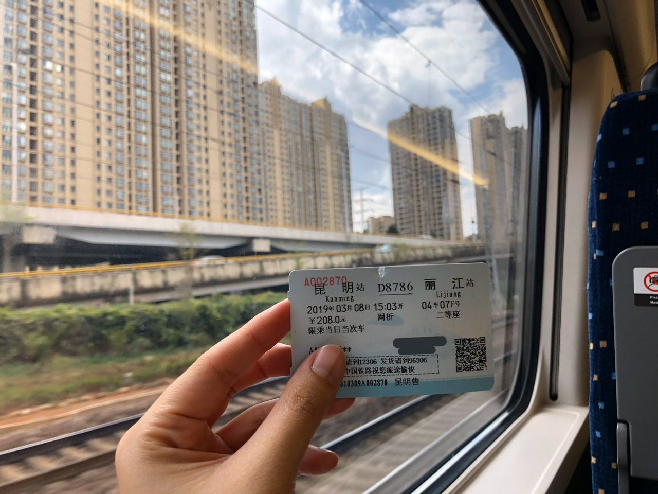 นั่งบัสมาลงป้ายสุดท้าย แล้วเดินตรงไปอีกหน่อยก็จะเจอสถานีรถไฟ เราจองตั๋วรถไฟผ่าน Trip.com มาแล้วประมาณพันนิด ๆ จากรีวิวส่วนมากคนไทยเลือกที่จะนั่งรถนอนไปลี่เจียง แต่พอคิดถึงเรื่องเวลาและความสะอาดแล้ว รถไฟความเร็วสูงเป็นทางเลือกที่ดีที่สุดสำหรับเรา ใช้เวลาราว ๆ 3 ชั่วโมงก็ถึงลี่เจียงประมาณ 18.30 น. มีเวลาให้เที่ยวซึมซับบรรยากาศกลางคืนของเมืองเก่าด้วย