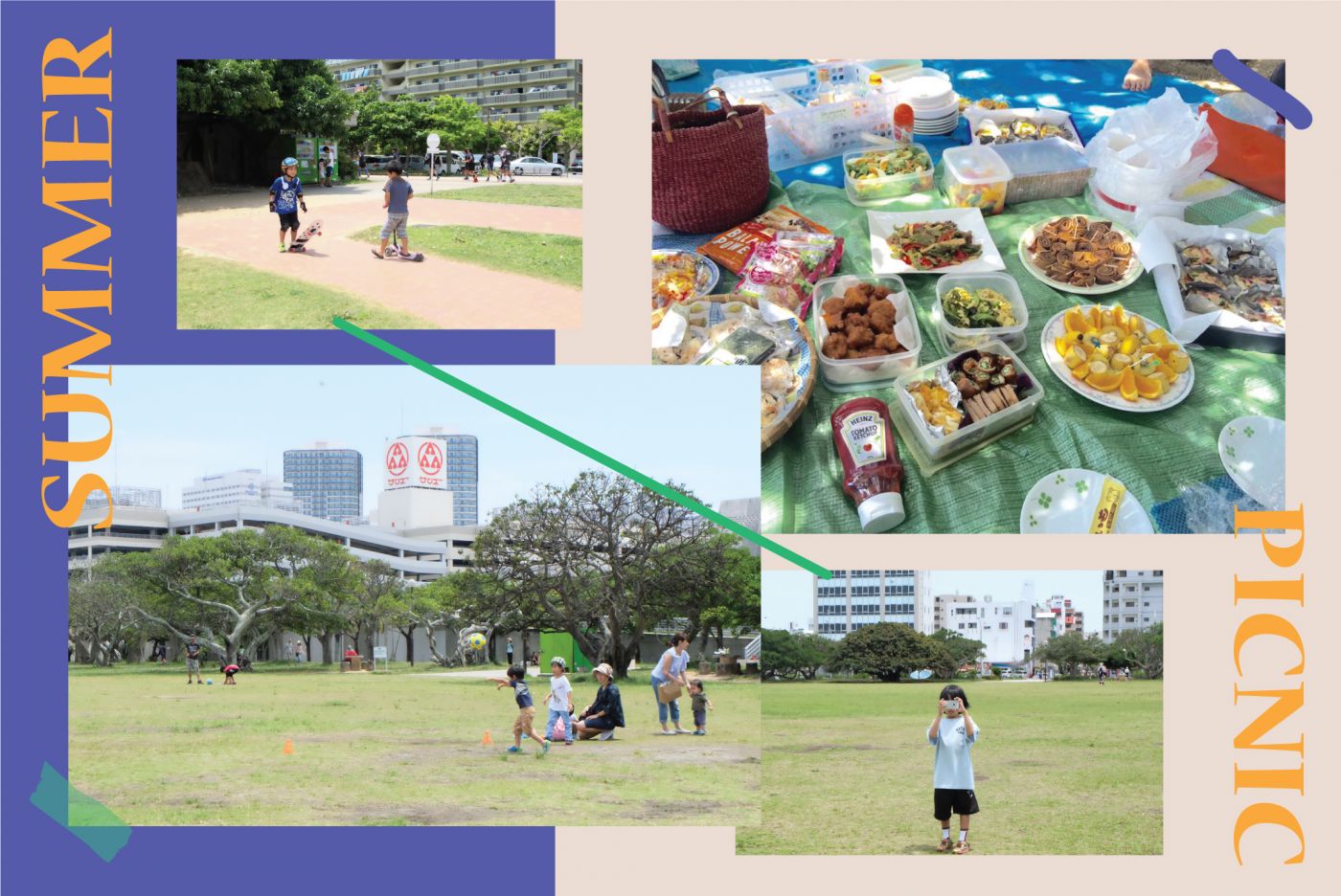 เอาจริงๆว่าโกลเด้นวีคที่โอกินาว่าเป็นหน้าร้อนแล้วเพราะอยู่ทางใต้สุดของประเทศ ในวันหยุดนี้ป้าที่บ้านได้ชวนเราและเมทมาปิ้กนิคกันกับเพื่อนๆของแกที่สวนสาธารณะใหญ่ของ naha                    โดยให้ทำอาหารมาคนละ1 อย่าง พอกินเสร็จก็มีเกมให้นั่งเล่นกัน วิ่งไล่กัน ในสวนมีเด็กเยอะมาก