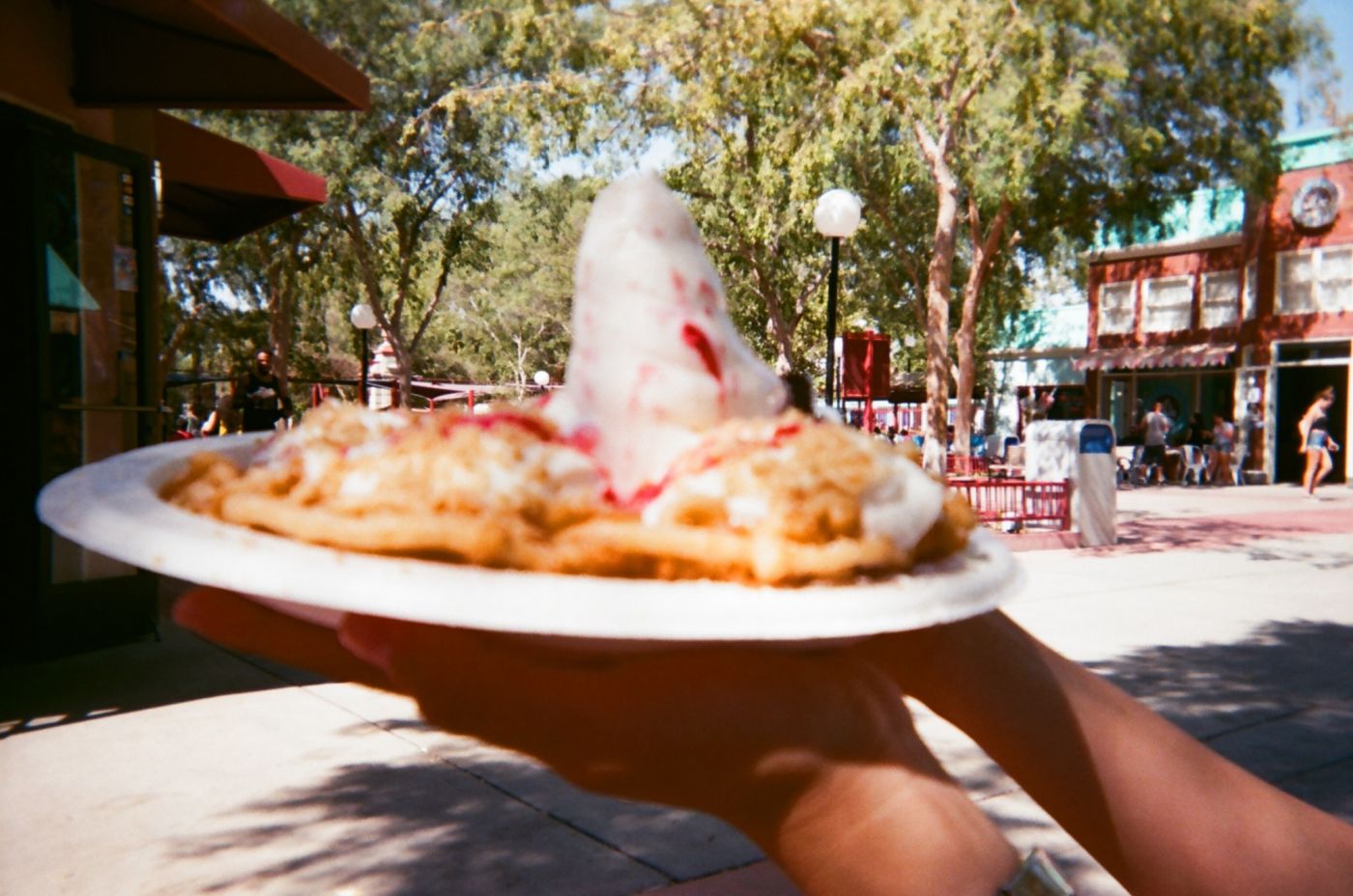 บรรยากาศมาสวนสนุกแล้วต้องกิน funnel cake นี่มันขาดไม่ได้จริงๆ