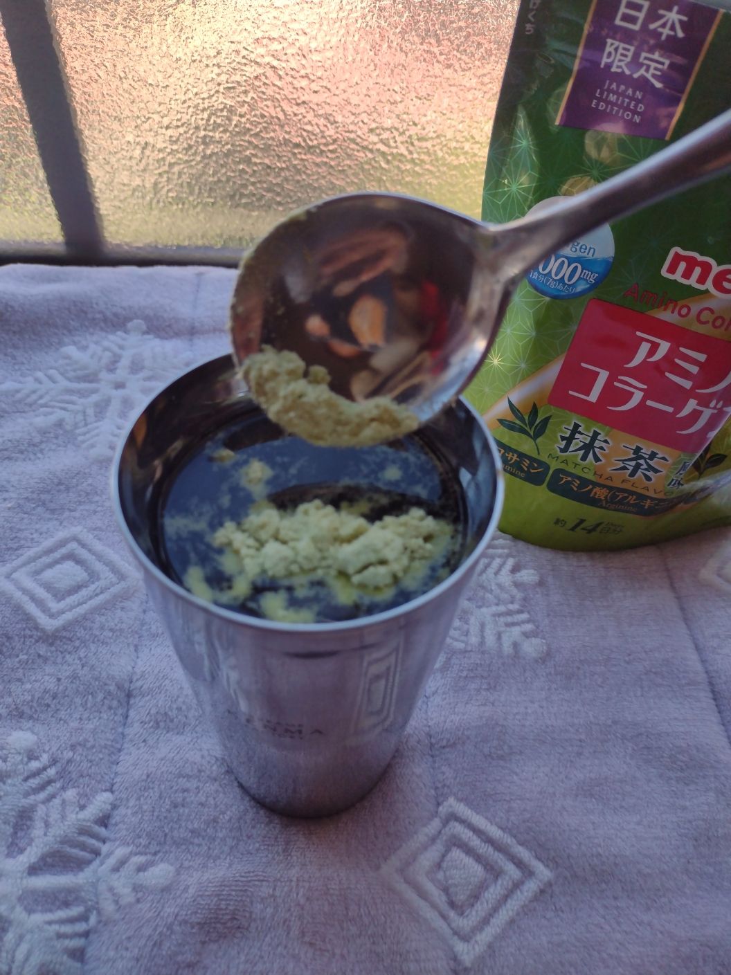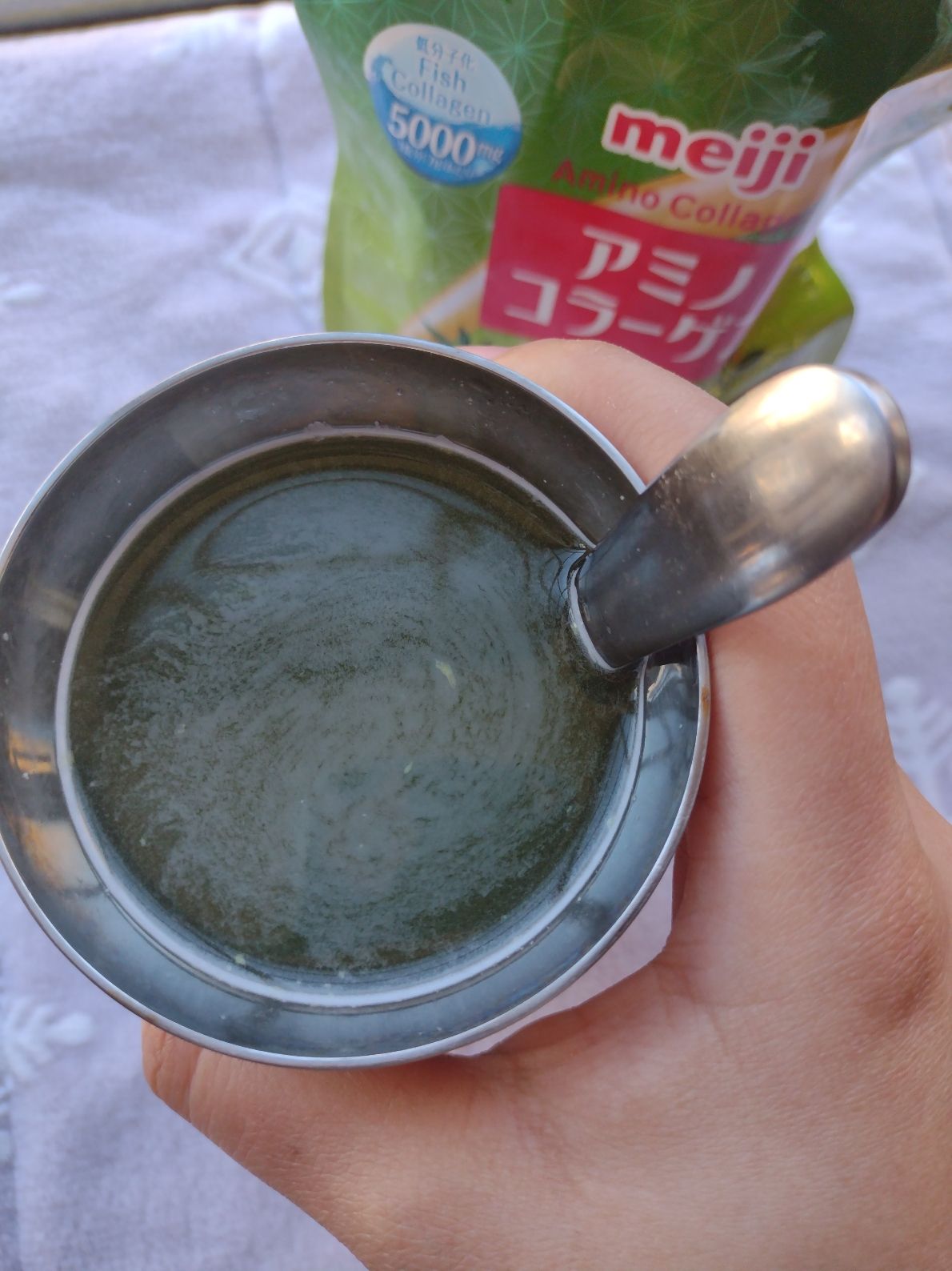 3. มีรสชาเขียว แต่เป็นรสชาติอ่อน ๆ ควรบอกว่าเป็นกลิ่นน่ะถูกแล้ว เพราะเมื่อนำไปชงกับเครื่องดื่มอื่น ๆ มันจะเนียนหายไปกับเครื่องดื่มเลย จะไม่รู้สึกเหมือนเราใส่คอลลาเจนชาเขียวลงไปเลย ฉะนั้นผู้ที่อยากลอง ต้องทำความเข้าใจก่อนนะคะว่าผลิตภัณฑ์นี้ไม่ใช่'รส'ชาเขียว แต่นี่คือคอลลาเจน'กลิ่น'ชาเขียวเท่านั้นค่ะ
