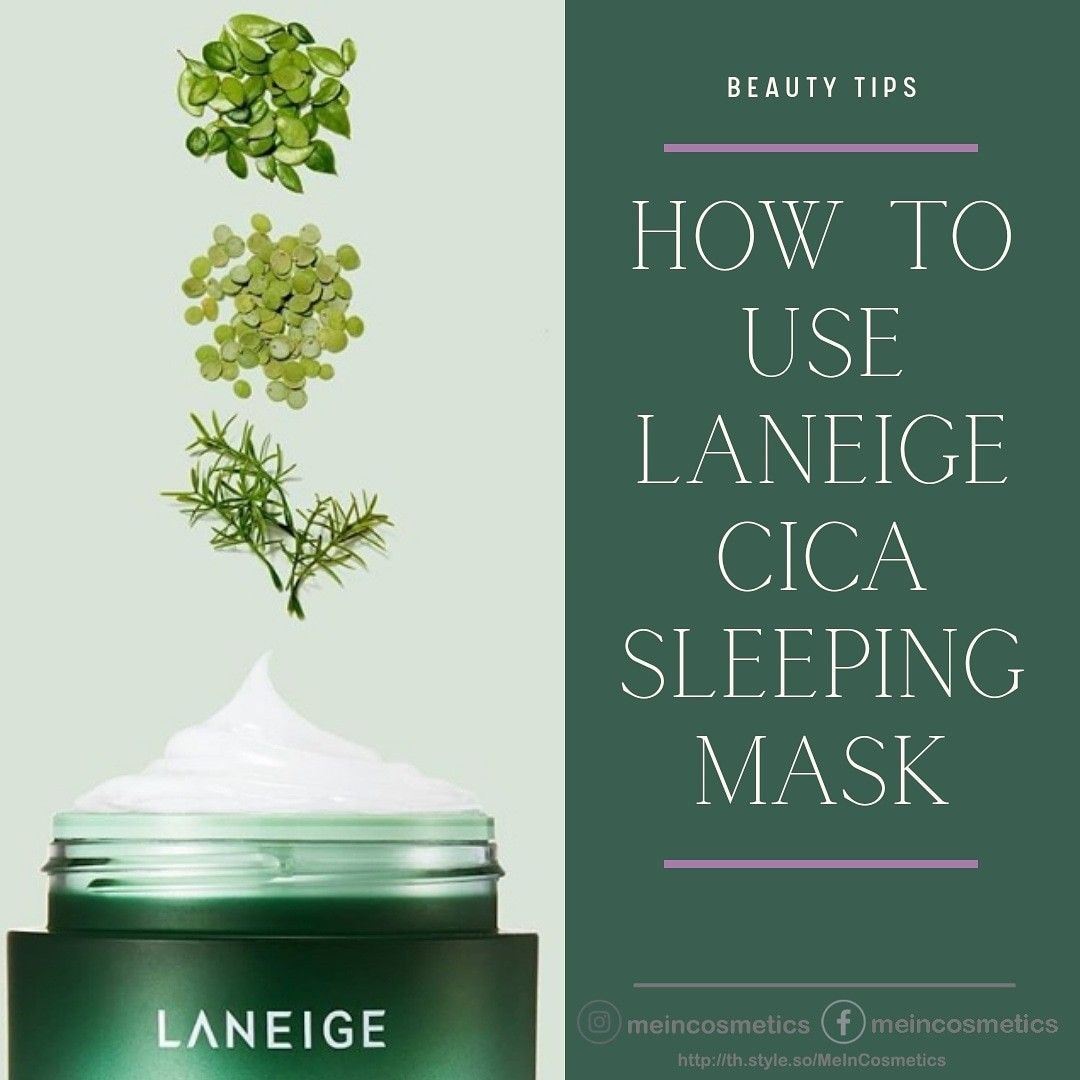 Beauty Tips ก่อนนอน กับ Me In Cosmetics ?? วันนี้จะมาพูดถึงตัว Sleeping Mask สีเขียวอันสุดดังกับของ Laneige Cica Sleeping Mask ?นับว่าเป็นสูตรใหม่ล่าสุดที่ผสมผสานความเขียวธรรมชาติกับ "Forest Yeast" ที่สามารถช่วยฟื้นฟูผิวเวลาเราหลับ และยังช่วยเรื่องสิวอุดตัน เติมความชุ่นชื่นให้กับผิวหน้าเราได้อีกด้วย