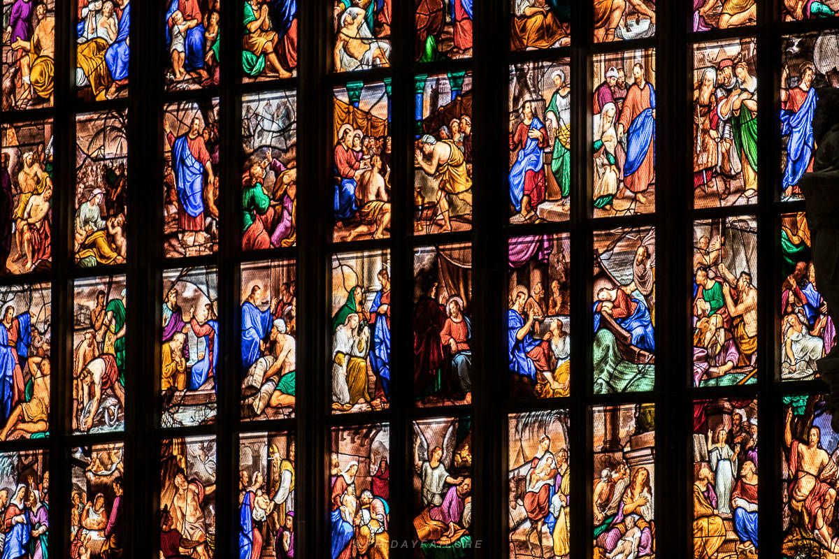 คราวนี้พอสร้างสูง มันก็ต้องมีคานมารับน้ำหนัก เขาเลยต้องสร้างเสาค้ำยัน (Buttress) ขึ้นมาเป็นตัวกระจายแรงออกมาด้านนอกอาคาร และด้วยหลังคามันแหลมๆ จะเอาศิลปินมาวาดเฟรสโก้ (จิตรกรรมฝาผนัง) บนเพดานมันก็จะดูไม่กว้างใหญ่ สวยงาม เขาเลยเปลี่ยนมาจัดเต็มที่ประตู หน้าต่างบานใหญ่ๆ สูงๆ แล้วทำเป็นกระจกโมเสกแทน
