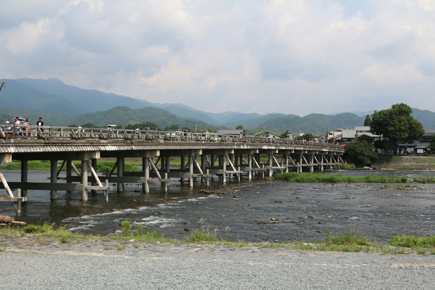 หลังจากที่เราได้รับจักรยาน ยานพาหนะคู่ใจของเราตลอดทั้งวันแล้วนั้น ก็รออะไรล่ะครับ ปั่นแหลกไปเล้ย ปั่นให้โซ่หลุด แล้วหยุดที่จ่ายค่าซ่อม 55555 ไม่ใช่อย่างน้าน เราก็ปั่นน้องจักก้าไปยังสถานที่แรกที่เราจะไปเลยนั่นก็คือ สะพาน Togetsukyo หรือ สะพานโทเง็ตสึเคียว นั่นเองค่ะ สะพานนี้ถือว่าเป็นสัญลักษณ์ของอาราชิยาม่าเลยค่ะ ใครมาอาราชิยาม่าต้องห้ามพลาดสะพานนี้นะคะเพราะเราบอกได้เลยว่าสวยมาก เพราะสองฝั่งของสะพานจะเต็มไปด้วยภูเขาที่เขียวขจีและมีแม่น้ำที่ดูแล้วสะอาดสบายตามากเลยค่ะ