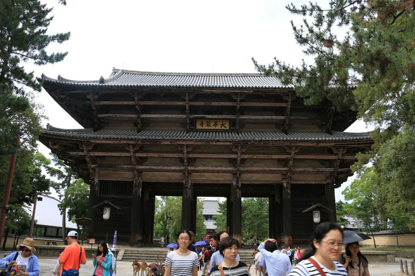ด้านซ้ายมือก็เป็นร้านขายของที่ระลึกรวมถึงขนม"เซมเบ้" ที่เอาไว้ให้น้องกวางกินค่ะ เมื่อเดินไปเรื่อยๆก็จะเจอกับประตูทางเข้าวัดชั้นแรกก่อนค่ะเป็นประมาณนี้ (รูปอาจจะไม่สวยมากเท่าไหร่เพราะตรงนี้คนค่อนข้างเยอะมากทีเดียวค่ะ)