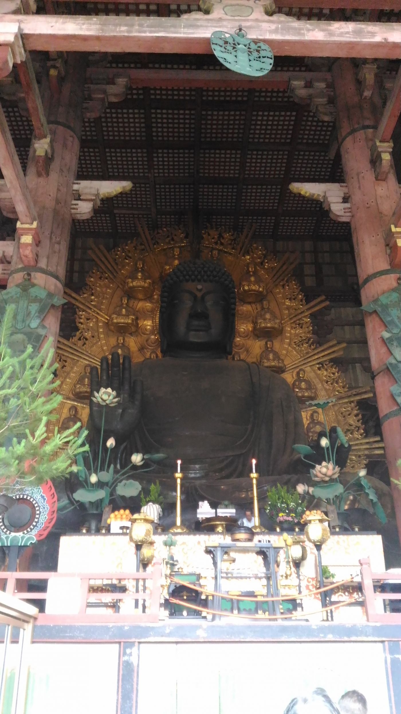 ตื่นเต้นทำไม5555 และนี่ก็คือตัวอาคารหลักของวัดโทไดจิค่า สถานที่จริงคือตัวอาคารใหญ่มากเลยค่ะ อาคารทั้งหลังจะทำมาจากไม้ทั้งหมดและได้รับการยอมรับว่าเป็นอาคารไม้ที่ใหญ่ที่สุดในโลกด้วยนะ วัดโทไดจิเป็นวัดที่มีชื่อเสียงอย่างมากในจังหวัดนาราและในประเทศญี่ปุ่น ภายในตัวอาคารก็ยังมีหลวงพ่อโตด้วยค่ะ องค์ใหญ่มากกกกกค่ะ นักท่องเที่ยวที่มาก็จะมาสักการะบูชากันอย่างล้นหลามเลยค่ะ