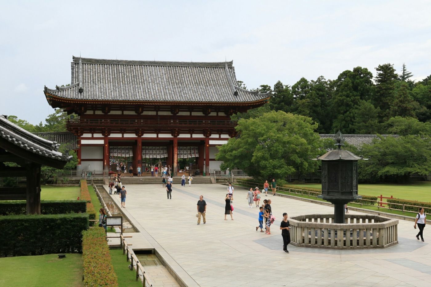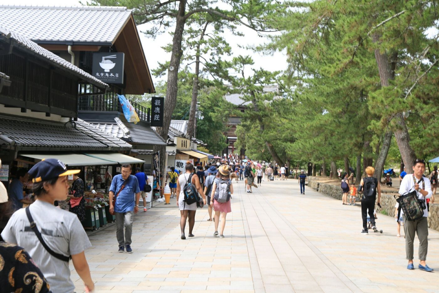 เมื่อยานพาหนะที่มีชื่อว่ารถเมล์ได้พาเรามาถึงที่หมายแล้วเราก็เดินลงมาด้วยใจที่เต้นตึ๊บๆ คือตอนนั้นตื่นเต้นอยากเจอกวาง แบบอยากเล่นอ่ะ วินาทีที่ลงไปก็คือกวางเลย เหมือนมีกวางมาต้อนรับเลย แต่จริงๆไม่ใช่มันก็เดินของมันดีนั่นแหละเรามโนเอง55555 เดินมาจากป้ายรถเมล์แค่ไม่กี่ก้าวก็ถึงวัดแล้วจ้า วัดแห่งนี้มีชื่อว่า Todaiji Temple หรือว่า วัดโทไดจิ นั่นเองค่ะ เมื่อเดินเข้ามาก็จะบรรยากาศแบบนี้ค่า