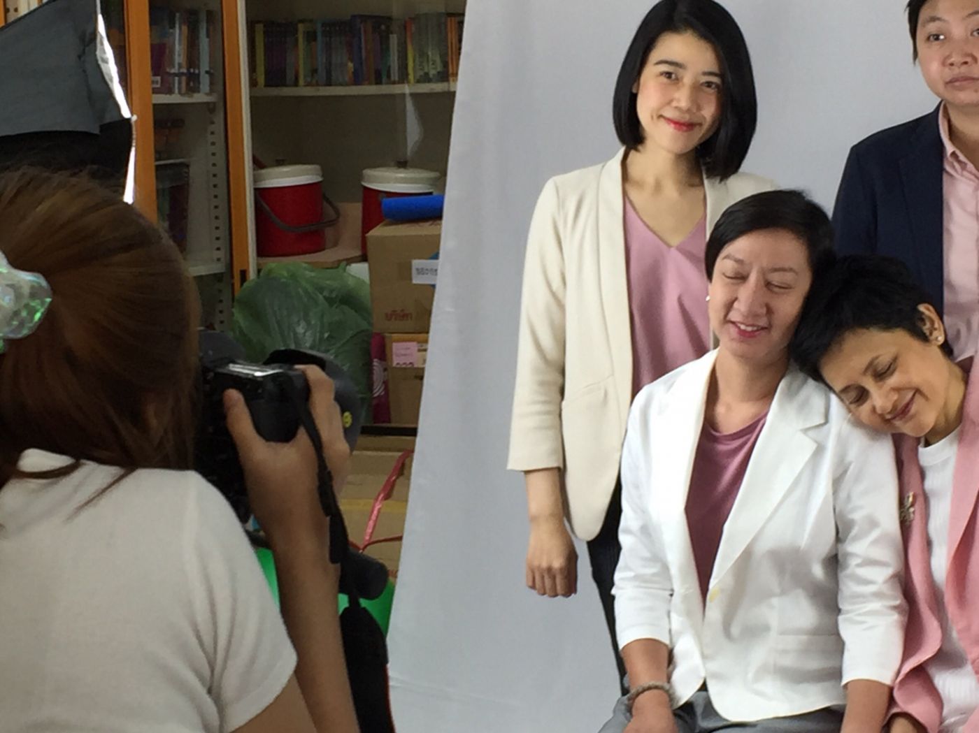 ตอนแรกที่เริ่มถ่ายก็เกิดอาการเกร็งทั้งคนถ่ายและคนถูกถ่าย รูปที่ได้บางรูปก็เลยออกมาดูเกร็ง ๆ พวกเพื่อน ๆ คนที่เหลือเลยช่วยกันชวนครูคุยให้หายเกร็ง คอยบอกครูว่ามุมไหนสวย ยิ้มแบบไหนดี เราเองที่เป็นคนถ่ายก็พลอยสนุกไปด้วย บางทีเพื่อน ๆ ก็เข้าไปช่วยจัดเสื้อผ้าและจัดผมของครูด้วย เป็นอีกวันที่เราทำงานกันเป็นทีม ใช้เวลาถ่ายอยู่นานเลยเพราะอยากได้รูปดี ๆ เนื่องจากรูปที่ถ่ายในวันนี้ต้องเอาไปลงเว็บซึ่งจะอยู่ในนั้นไปอีกนาน