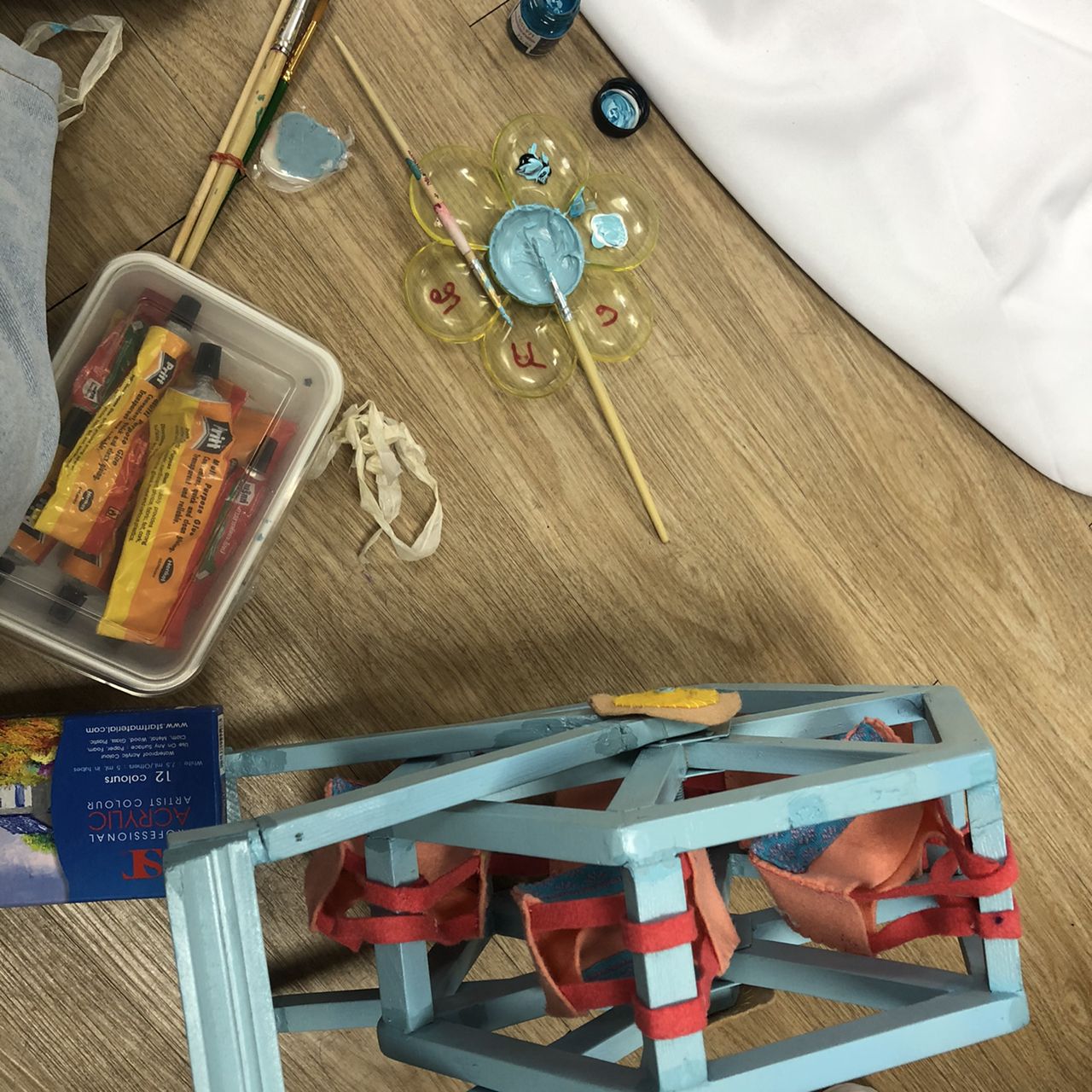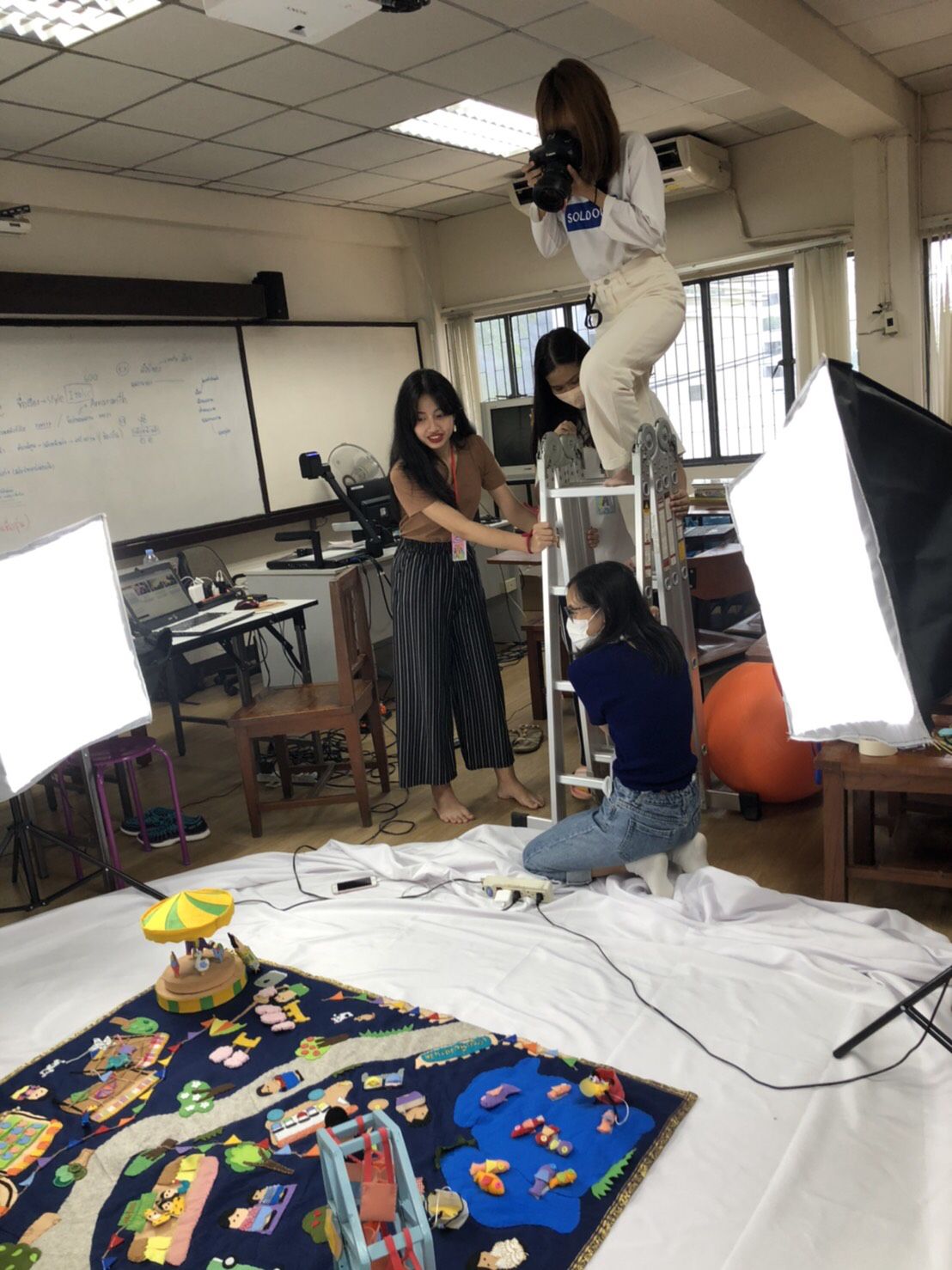 และนี่ก็คือหลักฐานของการทำงานเป็นทีม ✨ หลังจากที่ซ่อมชิงช้าสวรรค์เสร็จแล้วก็ต้องถ่ายรูปต่อซึ่งธีสิสชิิ้นนี้ใหญ่มากก กว่าจะถ่ายภาพรวมของงานได้เราก็ปวดคอมาก ไม่ห่วงตัวเองเลยแต่ห่วงกล้องครูแจ๊พมาก ดูแล้วคงราคาสูง ? การถ่ายงานชิ้นนี้คือเพื่อน ๆ ช่วยกันเซฟเราเป็นอย่างดี ดูได้จากการที่จับบันไดตั้งสามคน หรืออีกอย่างก็คือเพื่อนก็ห่วงกล้องครูแจ๊พเหมือนกัน 55555555