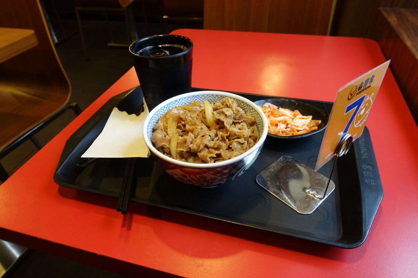 สุดท้ายก็เลี้ยวเข้าร้านข้าวหน้าเนื้อ Yoshinoya ด้วยความสิ้นคิด ซึ่งเราว่าที่นี่อร่อยกว่าที่ไทย สาขานี้อยู่ใกล้แยกหน้ามหาวิทยาลัย มีกล่องส่องทางไกลแบบหยอดเหรียญอยู่ในร้านด้วย แต่เราเลือกที่จะนั่งมองวิวผ่านหน้าต่าง