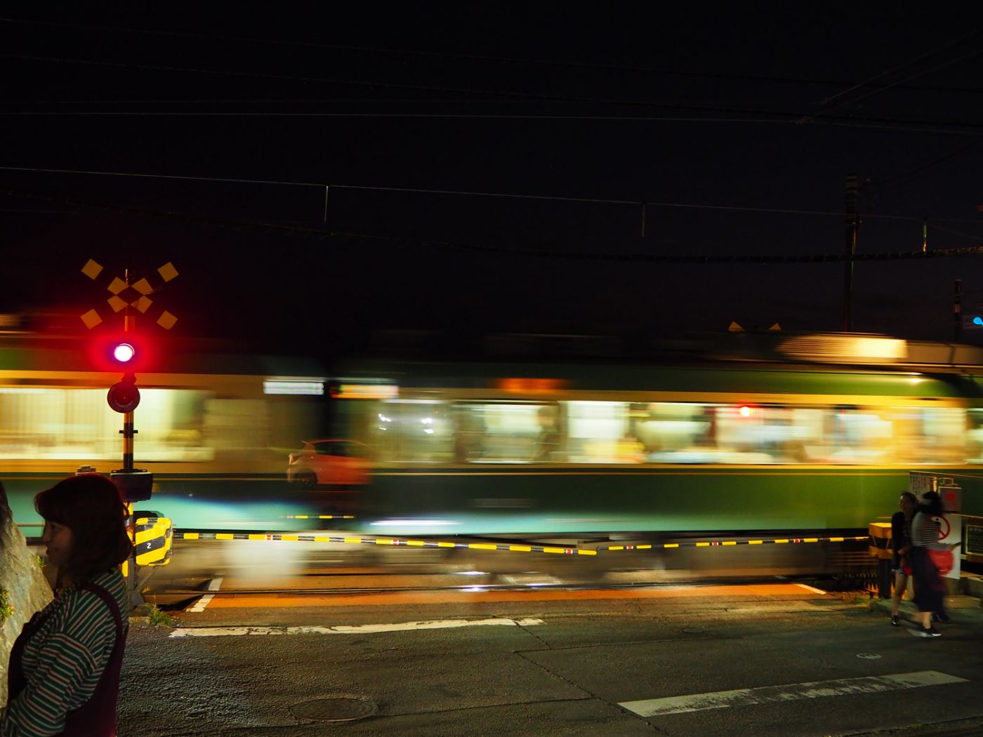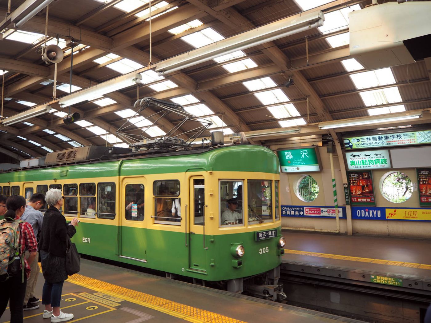ยืนอยู่ชานชาลา ต่อแถวรอเพื่อจะขึ้นรถไฟ รถไฟเอโนะเด็น(Enoden)เคลื่อนตัวมาจอดด้วยความเท่ พอมันหยุดนิ่ง ทุกคนในแถวเริ่มขยับตัวเล็กน้อย มองในระยะใกล้ สภาพของมันยังดูใหม่ แต่ก็รู้สึกได้ถึงความมีอายุ (เพิ่งมารู้ทีหลังว่าคันที่ได้ขึ้น (มีเลข 305อยู่ด้านหน้า) คือรุ่นที่สร้างเมื่อปี 1960 หรือ 57 ปี ก่อน) คนขับรถเปิดประตูออกมาด้วยความคล่อง มองย้อนกลับไปส่งสัญญาณมือ เสร็จเข้าไปกดปุ่มบางอย่าง ประตูเปิดออก ผู้คนในแถวต่างรุดหน้าเพื่อเข้าไปด้านใน