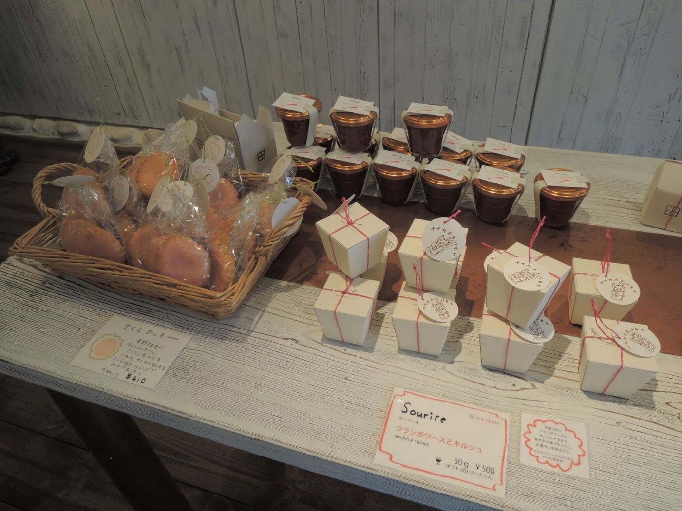 ร้านนี้โดดเด่นที่ทำแพ็กเกจจิ้งน่ารัก แค่เห็นกล่องก็อยากซื้อแล้วไม่ต้องกินขนมด้านในก็ได้ พอเข้าไปก็เจอกับบรรยากาศอบอุ่นเป็นกันเอง มีรอยยิ้มบนใบหน้าพนักงานคอยต้อนรับ ร้านเรียบง่าย แต่รู้สึกได้ถึงคุณภาพและความตั้งใจของเขา