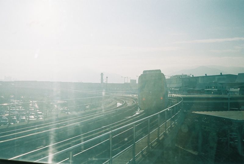 สะพายกล้อง 2 ตัวคล้องคอทั้งดิจิตอลและฟิล์ม แดดดีขนาดนี้จะพลาดได้ไงวะ แต่ก่อนอื่นต้องมองหาสถานีรถไฟก่อน มองซ้ายมองขวา อ้าว มันไม่เชื่อมต่อกับตัวอาคารแบบสนามบินนาริตะเหรอ เลยลองเดินออกไปข้างนอกจึงมองเห็นป้ายและเห็นคนเดินลากกระเป๋ามาจากทางนั้น