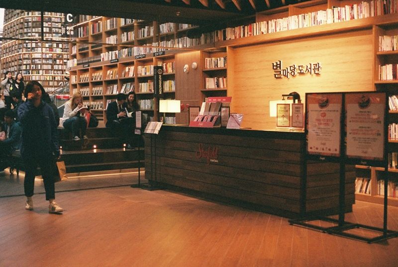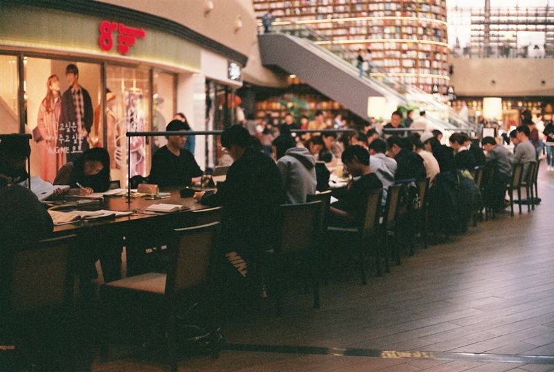 หายเมื่อแล้วก็เดินเข้าไปในห้างไปสำรวจสักหน่อย ข้างในมี Kakao Friends Store ตรงกันข้ามเป็นห้องสมุด รู้สึกตื่นเต้นกับการที่มีห้องสมุดใหญ่โตขนาดนี้อยู่ในห้าง และเห็นคนอ่านหนังสือกันจริงจังมาก มีทุกเพศ ทุกวัย