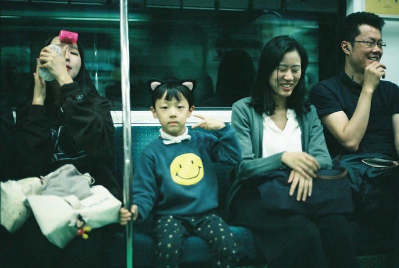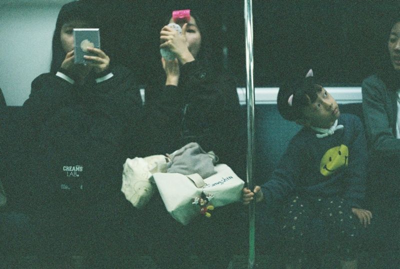ระหว่างนั่งรถไฟกลับที่พัก ก็ถ่ายรูปบนรถไฟไปเรื่อยเปื่อย ตอนแรกตั้งใจจะถ่ายสาวน้อย(?)ที่กำลังแต่งหน้าเหมือนอยู่บ้าน มีม้วนผมม้าด้วยโรลสีชมพูสดใส ตาก็เหลือบไปเห็นน้องผู้ชายข้างๆใส่หูแมวเลยคุยกับอันว่า เฮ้ย! โมเอ้มาก จังหวะนั้นเราถือกล้องฟิล์มอยู่ ขณะที่กำลังละสายตาจากวิวไฟน์เดอร์เพื่อนก็สะกิด “น้องเขาชูสองนิ้ว” เราเลยหันไปมองไปอีกรอบ น้องกำลังชูสองนิ้วคล้ายกำลังรอให้เราถ่ายรูป เราก็ยิ้มแล้วถ่ายมา 2 รูป หลังกดชัตเตอร์ก็ยังนั่งต่ออีกหลายสถานี น้องก็ทั้งยิ้มทั้งโบกมือ ท่าทางเหมือนอยากคุยด้วย น่ารักมาก จนถึงที่หมายของเรา เราก็ลงก่อน แน่นอนไม่ลืมที่จะโบกมือให้น้อง แม่น้องก็น่ารักมาก หน้าเหมือนกันเลย 5555