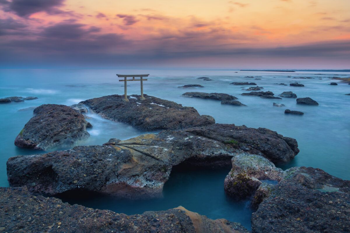 และไฮไลต์สำคัญของศาลเจ้าโออาราอิ อิโซซากิก็คงเป็นอะไรไปไม่ได้นอกจากประตูโทริอิที่ตั้งตระหง่านบนโขดหินอย่าง ประตูคามิอิโซะ โนะ โทริอิ (Kamiiso no Torii) โดยประตูโทริอิที่ว่านี้ตั้งอยู่บนแนวหินที่ยื่นออกสู่ทะเลคาชิมะนาดะ (Kashima Nada Sea)