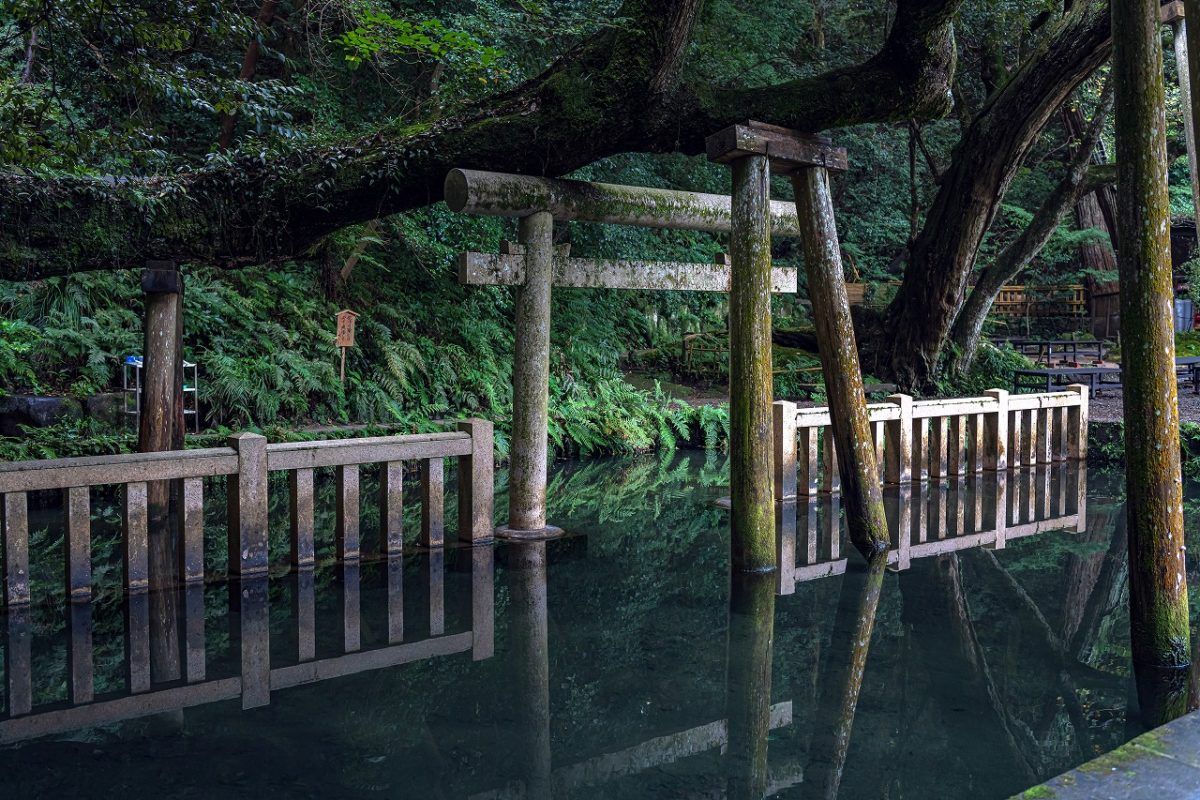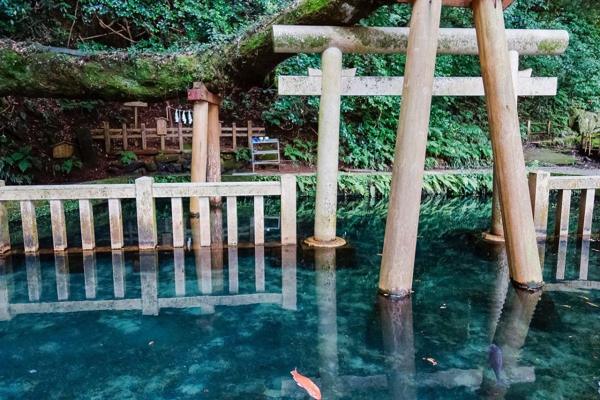 อีกหนึ่งไฮไลต์ที่ทำให้นักท่องเที่ยวต่างลงความเห็นว่าจะต้องมาโดนที่นี่ให้ได้ก็คือสระน้ำที่ซ่อนอยู่ด้านหลังศาลเจ้า ซึ่งมีชื่อเรียกว่า มิตาราชิอิเกะ (Mitarashi Ike) แปลว่าสระน้ำศักดิ์สิทธิ์ โดยเราสามารถกล่าวได้ว่าน้ำของที่นี่มีความใสสะอาดจริง เพราะเป็นน้ำที่ผุดขึ้นมาจากใต้ดิน หากลองสังเกตที่บริเวณผิวน้ำในสระดีๆ เราจะเห็นฟองน้ำที่กำลังผุดขึ้นมาจากก้นบ่อด้วย (ใสเบอร์นั้นจริงๆนะคะคุณ~)