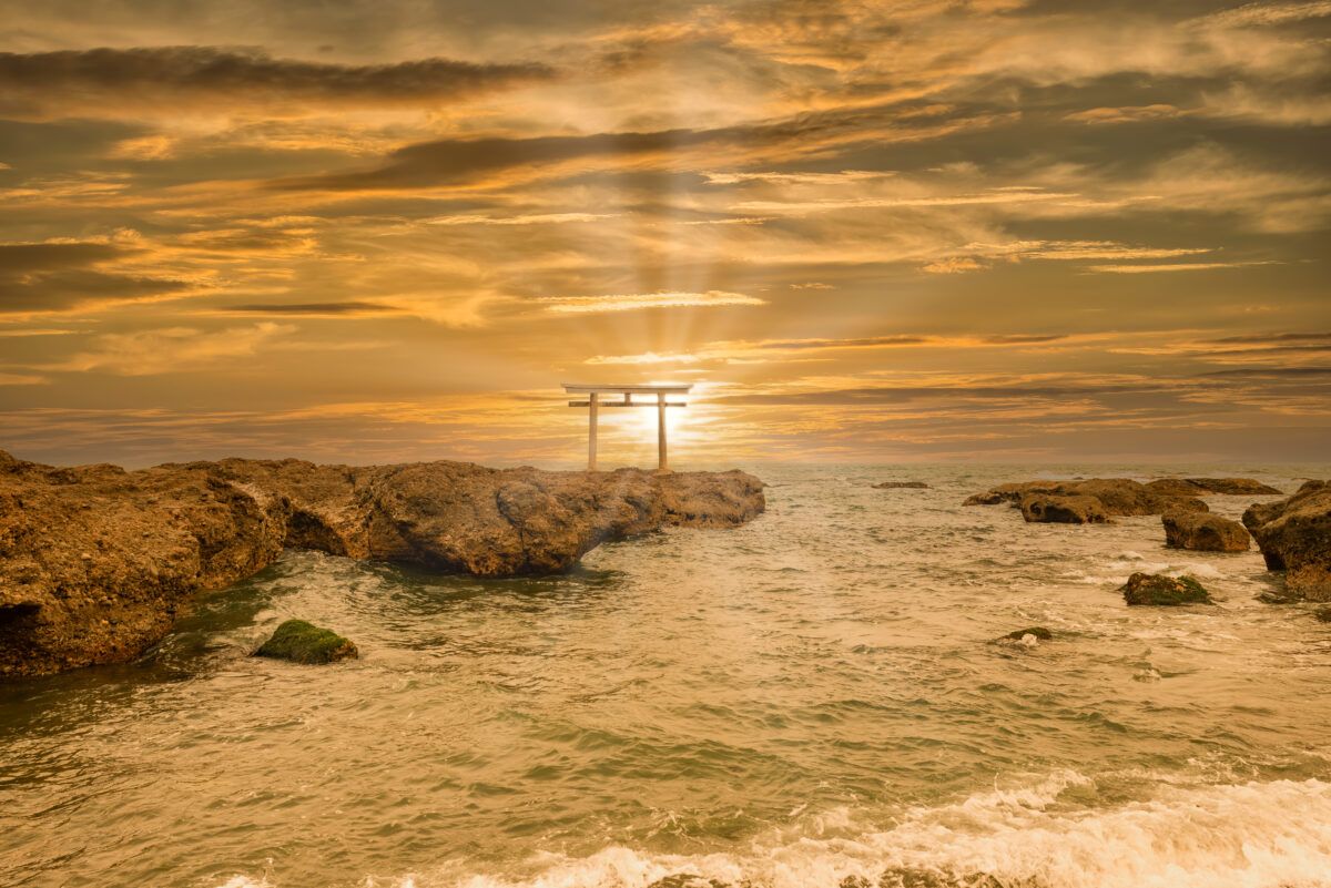 สถานที่แห่งนี้สร้างขึ้นเพื่อเป็นที่ประดิษฐานของเทพเจ้าทั้งสองดังที่กล่าวไปข้างต้น ส่วนสาเหตุที่ว่าทำไมถึงต้องมาที่นี่ให้ได้นั้นก็คงไม่ต้องพูดเยอะ เพราะวิวสวยๆยามคลื่นกระทบโขดหินจนมวลน้ำสาดกระเซ็นนั้น เป็นดั่งฉากจากธรรมชาติที่สร้างมาให้กับประตูโทริอิแห่งนี้