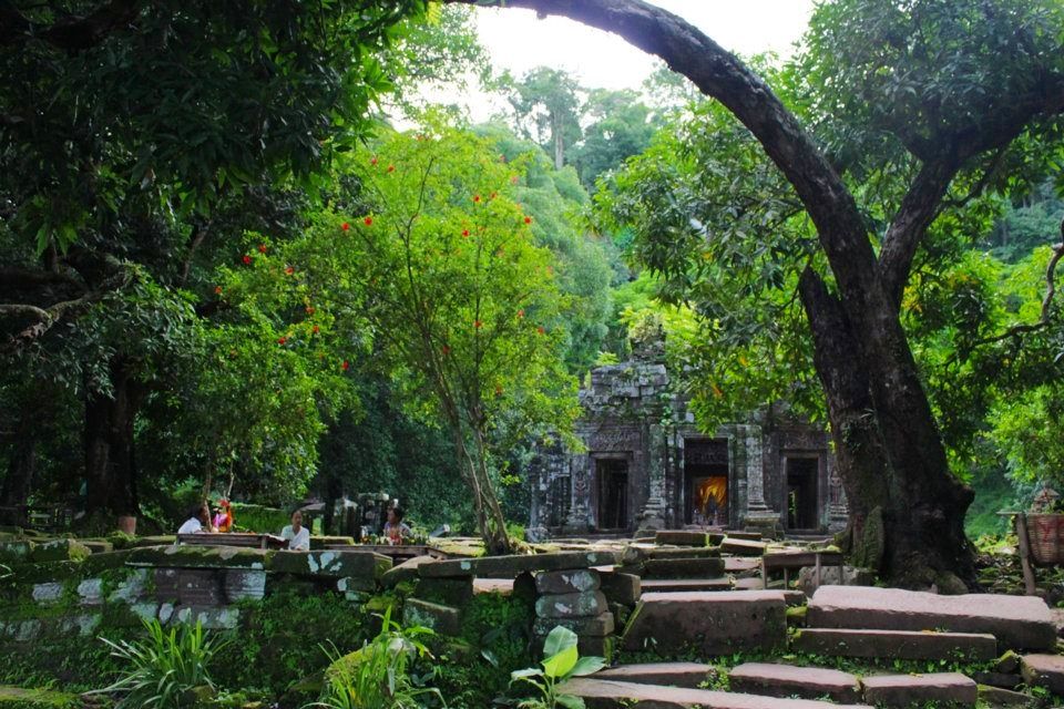 ปราสาทหินเก่าแก่สีเข้มแอบซ่อนอยู่ภายใต้ม่านสีเขียวขจีของหมู่แมกไม้ มองแล้วให้บรรยากาศเข้มขลังลึกลับราวกับว่าถ้าเดินเข้าไปอาจจะเจอขุมทรัพย์โบราณที่ซ่อนอยู่ก็ได้...นั่นคือเสน่ห์ของวัดพูที่ฉันสัมผัสได้ในความทรงจำอันเลือนลางของตัวเอง...