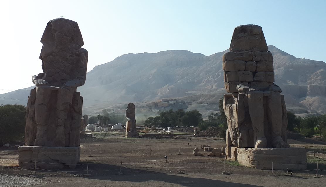 หลังจากการเยี่ยมชมหุบผาราชินีที่ทิ้งความประทับใจไว้ในความทรงจำของฉันอย่างมากแล้ว ขากลับเราได้ไปแวะที่รูปสลักเมมนอน ซึ่งตั้งอยู่ออกไปไม่ไกลนักจากรถ รูปสลักหินฟาโรห์ยักษ์ใหญ่สองรูปตั้งตระหง่านมานานกว่า 3,000 กว่าปีแล้ว