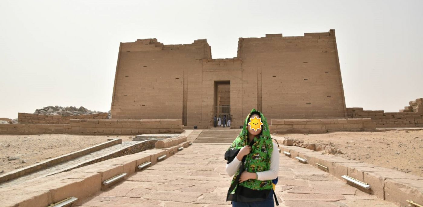 ช่วงบ่ายร้อนๆอีกวันหนึ่งในอียิปต์ คณะทัวร์ของเราแบ่งออกเป็นสองกลุ่มเพื่อแยกขึ้นเรือไปชมวิหารคาลับชา หนึ่งในหลายๆวิหารที่ถูกขนย้ายขึ้นมาจากเขื่อนอัสวาน เรือของเราวิ่งชิวเหนือน้ำเพื่อพาเราไปยังเกาะวิหารที่ตั้งอยู่กลางน้ำ ฉันรู้สึกถึงสายลมที่สัมผัสใบหน้ากับน้ำที่กระเซ็นมาโดนบ้างเป็นครั้งคราว ทันทีที่เรือเทียบท่าสิ่งแรกที่ฉันรู้สึกคือ ความร้อนที่เสียดแทงทะลุเสื้อผ้ามาถึงผิว ถ้าความร้อนนี้เป็นมีด ฉันคงเลือดออกท่วมตัวอย่างแน่นอน อากาศมันร้อนเหลือรับจริงๆ