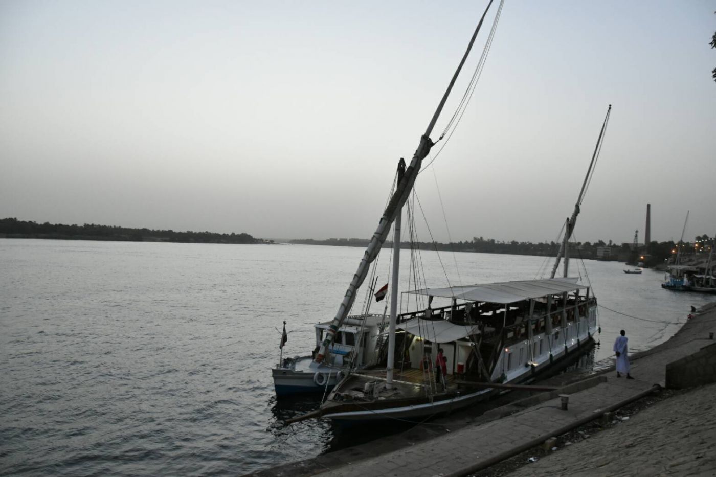 คณะทัวร์เราเดินทางไปยังที่ที่เราจะพักกันในคืนนี้ รถค่อยๆจอดที่ถนนเส้นหนึ่งริมฝั่งแม่น้ำไนล์ มีเรือลำใหญ่ๆจอดเทียบท่าอยู่สองลำ นี่แหละที่พักของเราในค่ำคืนนี้!