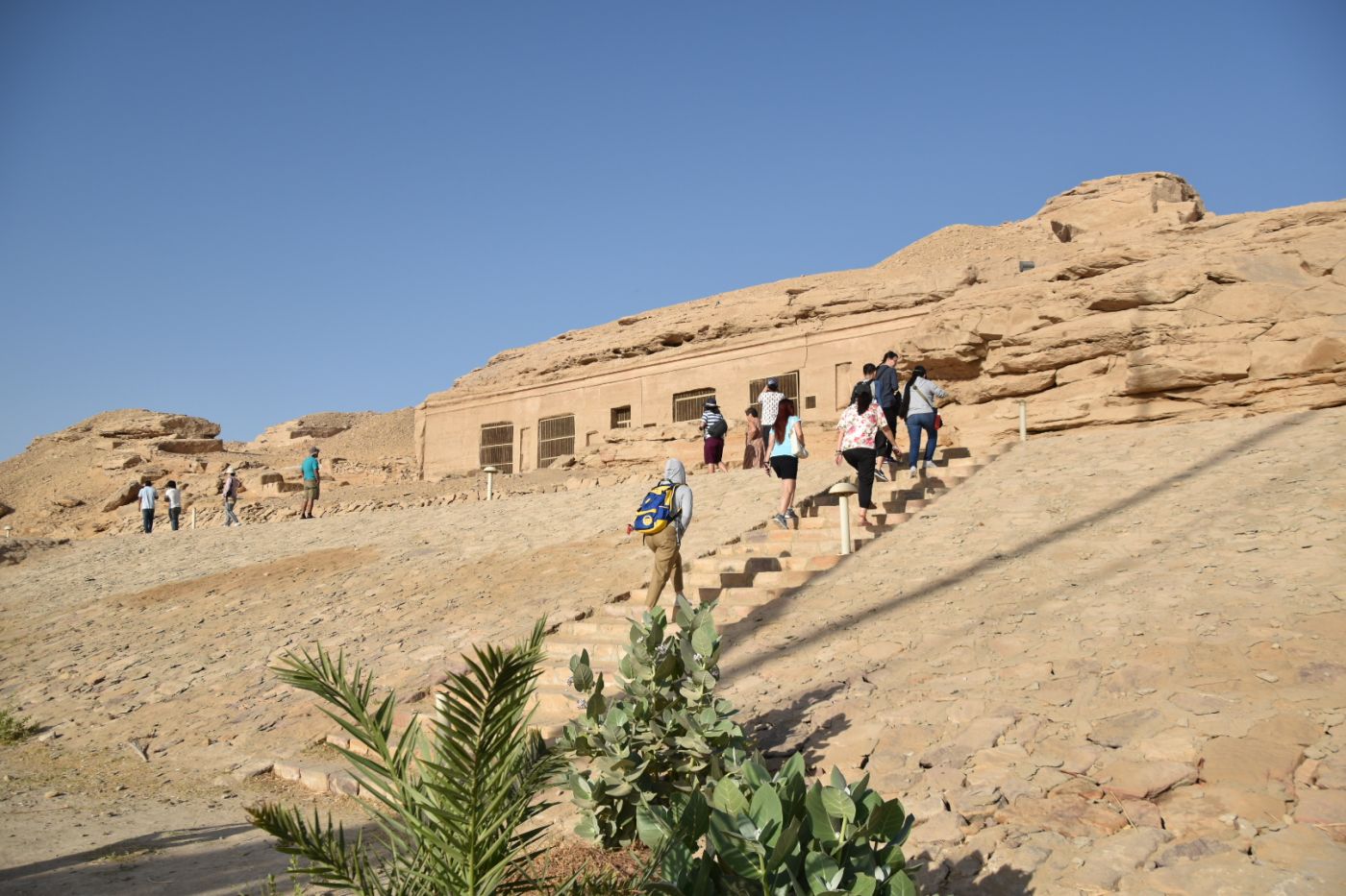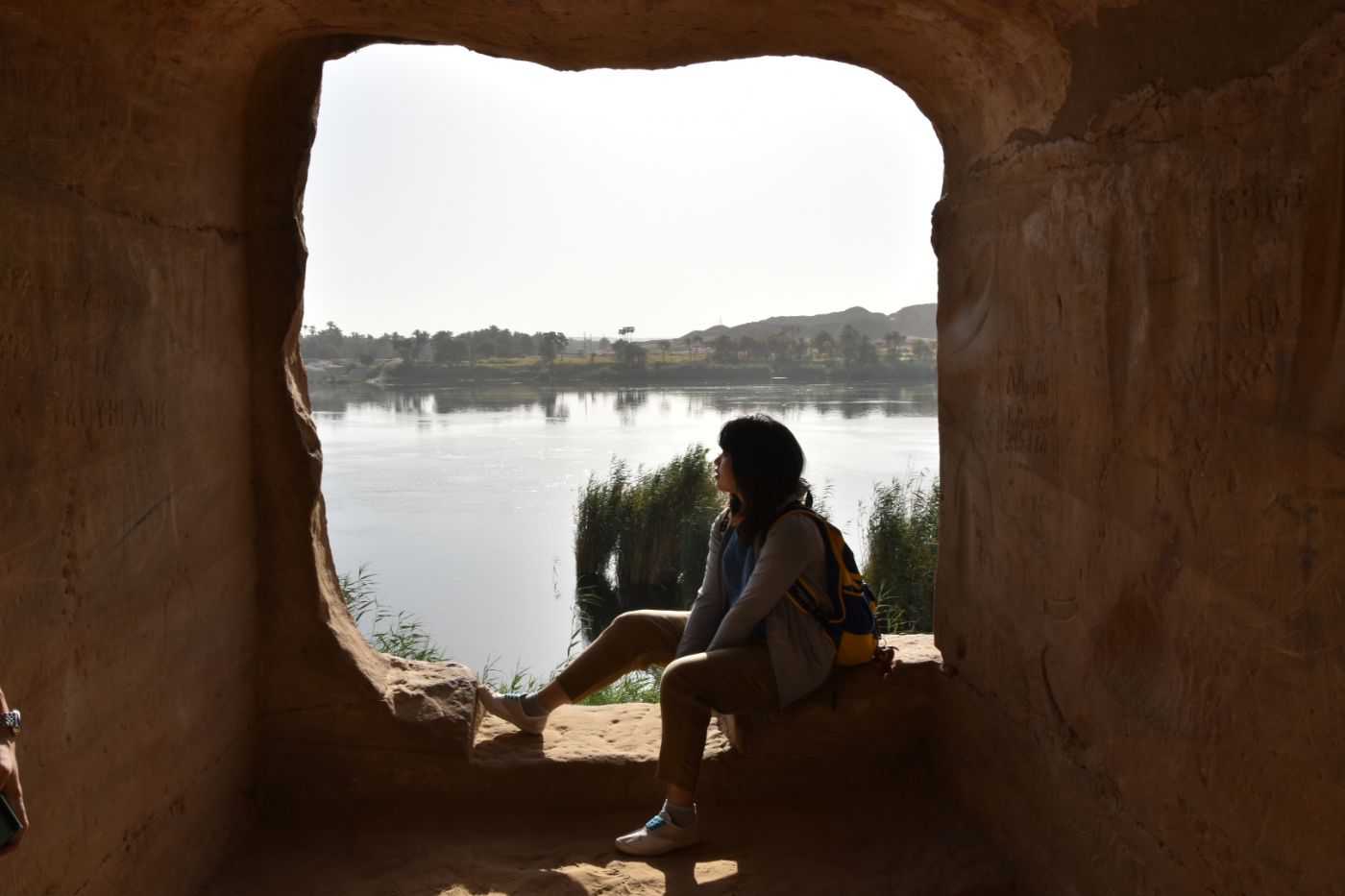 วิหารหินนี้ฉันสามารถปีนขึ้นไปดูได้ เพราะวิหารแห่งนี้เหมือนถูกเจาะจากข้างใน ทางเข้าเหมือนแอนทีโลป แคนยอนหน่อย แต่พอเข้าไปถึงด้านในแล้วทำให้นึกถึงบ้านของมนุษย์ยุคหิน ฟลินท์สโตนขึ้นมา เวลาเขามองออกไปนอกบ้านคงจะรู้สึกแบบนี้เหมือนกัน แต่ฉันคิดว่าวิวนอกบ้านฉันน่าจะสวยกว่านะ เป็นภาพที่รู้สึกทำให้ใจฉันสงบมาก มีภูเขาเป็นพื้นหลัง สายน้ำไหลเอื่อยๆ มีต้นไม้กอหญ้าขึ้นอยู่ตามริมแม่น้ำไนล์