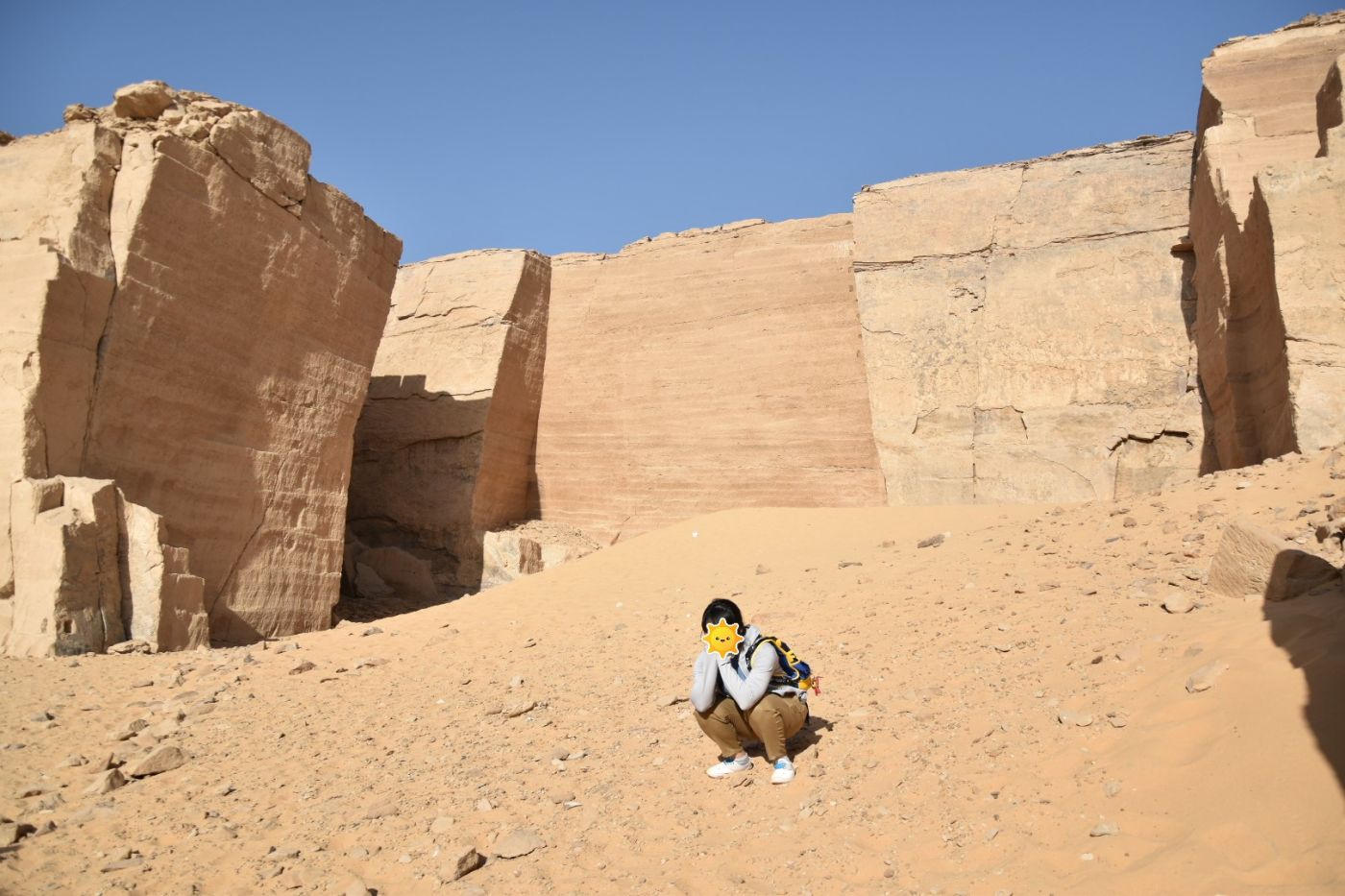 เราเดินลึกเข้าไปเรื่อยๆ พี่โอ๊ตบอกว่าที่นี่เป็นเหมืองเก่าที่คนงานจะตัดหินเอาไปใช้ในการก่อสร้าง ก็เอาไว้ใช้สร้างสุสาน สร้างวิหารนั่นแหละ น่าประหลาดใจที่ภูเขาบางลูกมันเรียบมากจริงๆ เหมือนคนเอามีดมาตัด แต่เฮ้ย..นี่มันหินนะ มันจะเรียบขนาดนี้ได้อย่างไรกัน เป็นอีกครั้งที่นึกทึ่งกับคนสมัยโบราณ