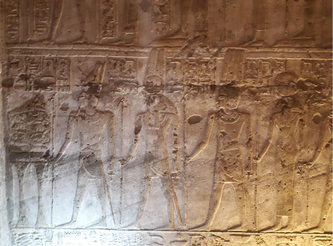 เพื่อนในคณะทัวร์อย่างพวกพี่ยูริที่ทำงานในมหาวิทยาลัย พี่จ๋าแม่สาวโอมานแอร์และพี่โอ๊ตวิทยากรของเราที่สนิทกับพี่สาวของฉัน จากตอนแรกที่ดูเกร็งๆกับฉันในตอนแรกก็ชวนมาถ่ายรูปด้วยกัน สงสัยว่าการถ่ายรูปเอาหัวมุดรูน่าจะเป็นการละลายพฤติกรรมกันกระมัง พี่ๆเขาถึงเข้ามาพูดคุยอย่างสนิทสนมมากขึ้น เห็นบอกว่าตอนแรกไม่กล้าคุยด้วยเท่าไร เพราะกลัวฉันจะหาว่าเขาบ้าๆบอๆกัน แต่พอเจอฉันชวนถ่ายรูปประหลาดเขาถึงบางอ้อว่า อ๋อ เรามันพวกเดียวกันนี่หว่า พวกเราเดินไปคุยไปก่อนเดินเข้าไปชมวิหารโอเลมเฮปที่เป็นวิหารแบบตัว T ที่เห็นได้ทั่วไป ก่อนกลับพวกเราก็เลยมาถ่ายเซลฟี่หมู่กลุ่มใหญ่ที่หน้าวิหารพร้อมเจ้าหน้าที่ที่เฝ้าวิหาร ก่อนที่จะขึ้นเรือเพื่อไปชมวิหารเอ็ดฟูกันในช่วงสายๆ