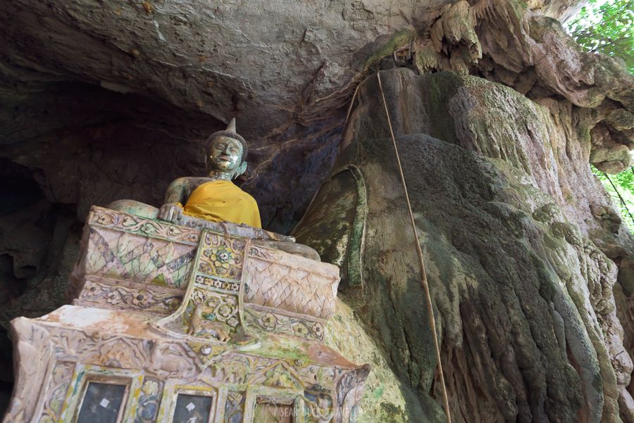เมื่อยืนอยู่กับพระพุธรูปน้อยใหญ่ในแสงสลัว รวมกับเสียงแหลมๆ ของค้างคาวหรือตัวอะไรซักอย่าง และเสียงน้ำก้องสะท้อนไปตามผนัง บรรยากาศวังเวง เย็นยะเยือก สิ่งที่เคยใช้ยึดเหนี่ยวจิตใจก็กลายเป็นสิ่งที่น่าหวาดระแวง บวกกับตำนานของ “ไอ้เต” ทักผู้พิทักษ์สมบัติที่ถูกพันธนาการไว้ไม่ให้ไปไหน ทำให้ผมเสียวสันหลังทุกครั้งที่ยกกล้องขึ้นถ่ายภาพ ยังไม่ทันได้สำรวจทุกซอกทุกมุมสติก็แตกกระเจิง เผ่นลงเขาแทบไม่ทัน