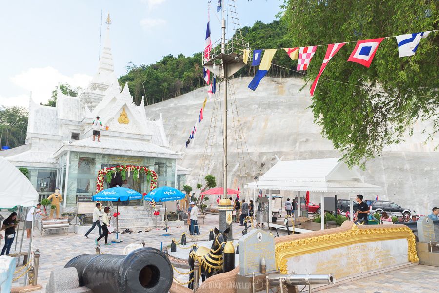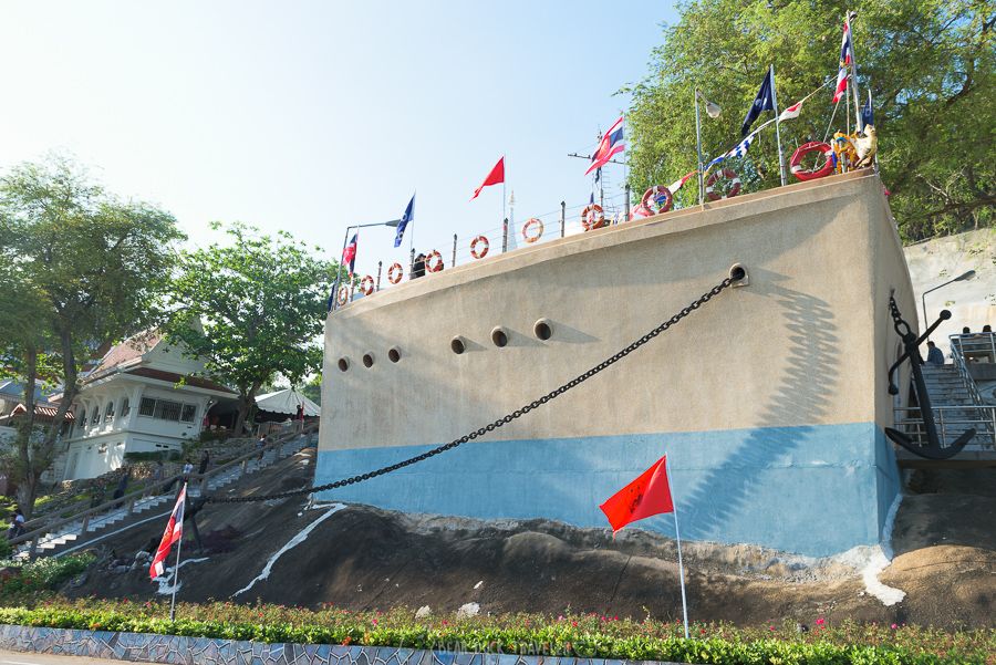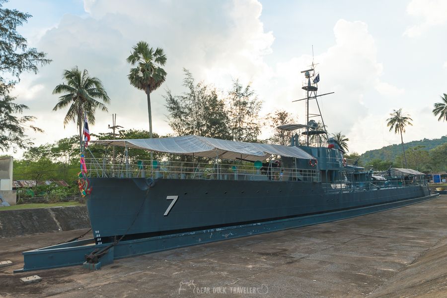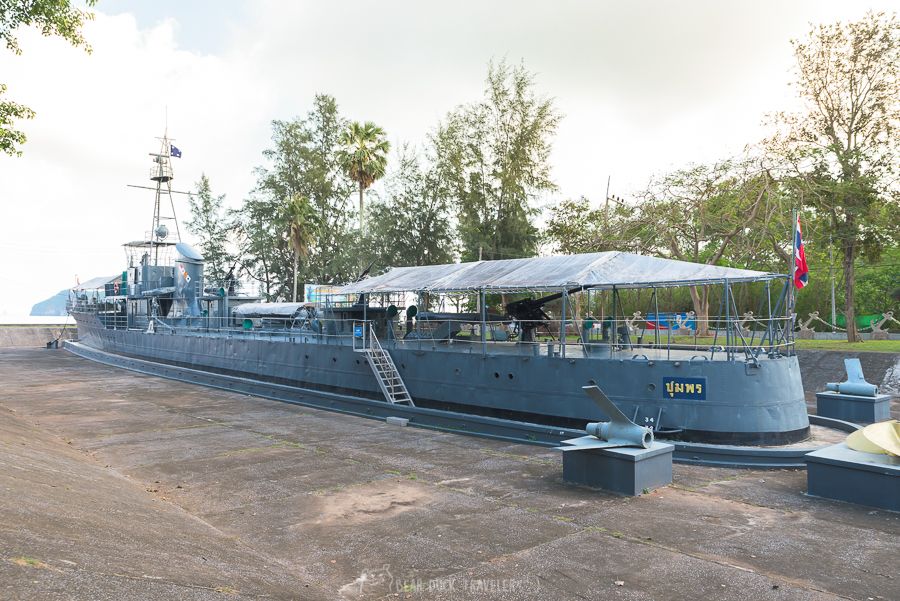 อีกจุดที่น่าแวะไปดูคือเรือรบหลวงชุมพร ตั้งอยู่เชิงเขาห่างจากศาลไม่กี่ร้อยเมตร ดีกรีเรือตอร์ปิโดเมดอินอิตาลี ขนาดอาจเล็กไปซักหน่อยเมื่อเทียบกับมาตรฐานปัจจุบัน แต่ก็ยังคงไว้ด้วยความสง่างาม สมกับที่ครั้งหนึ่งมันเคยปกปักรักษาน่านน้ำไทย