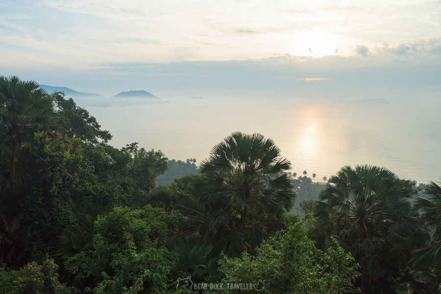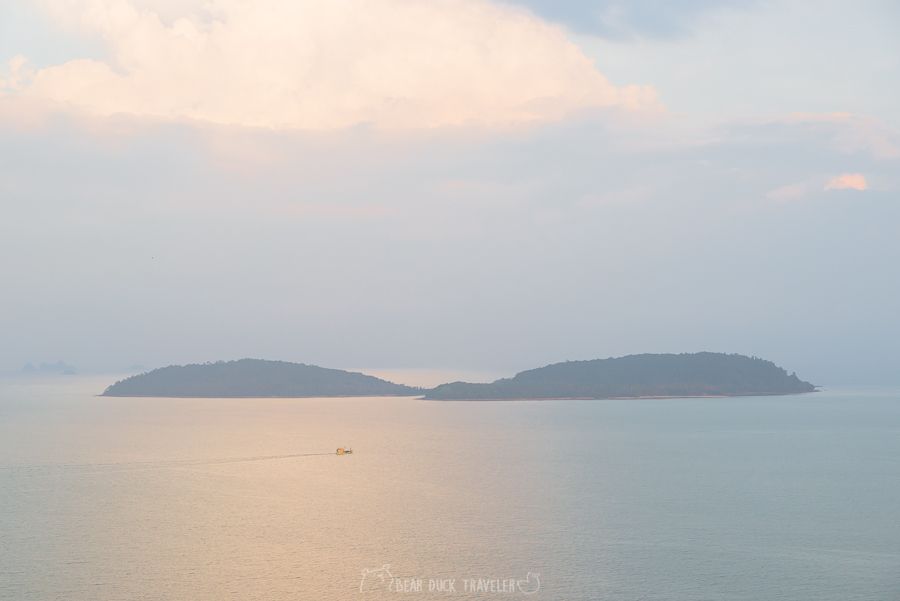 จากอ่าวทุ่งมะขาม ขับรถเลาะเลี้ยวผ่านหมู่บ้านไปตามถนนสายน้อย แล้วขึ้นเขาอีกหน่อยก็จะถึงจุดชมวิว ด้านบนที่จอดรถไม่มากนักแต่โชดดีที่เราขึ้นมาเป็นคันแรก จึงไม่มีปัญหา