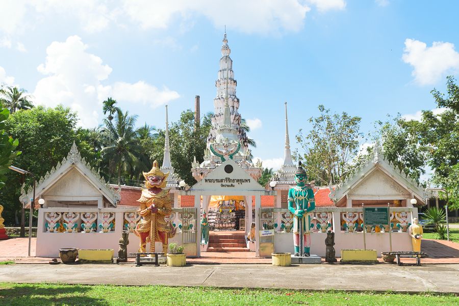 วัดเก่าแก่ เชื่อกันว่าเป็นที่ตั้งของเมืองชุมพรเมื่อครั้งกระนู้น สิ่งน่าสนใจคือพระธาตุเจดีย์ศิลปะสมัยศรีวิชัยสวยแปลกตา ภายในบรรจุพระบรมสารีริกธาตุเอาไว้ สักการะแล้วอย่าลืมแวะทักทายเจ้าสิงห์หน้าแป้นปากชมพูตรงบันได ที่ไม่รู้จะเรียกว่าน่ารักหรือน่ากลัวดี