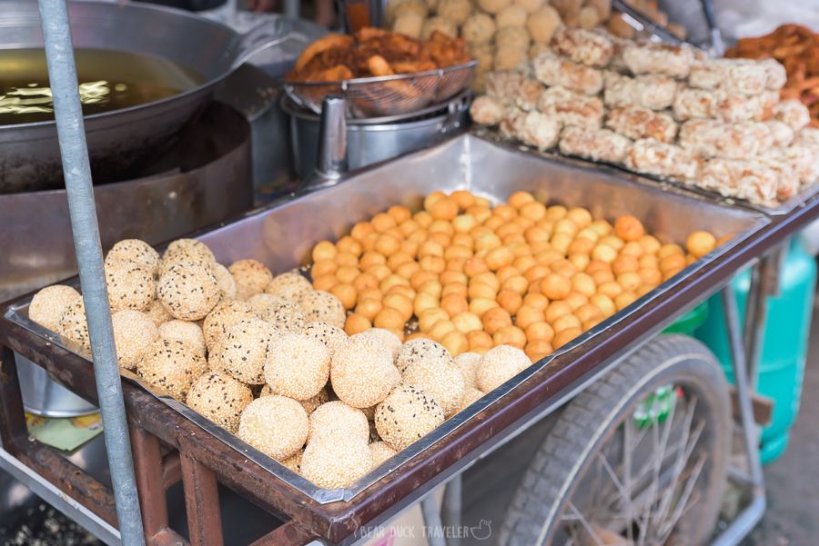 ที่ตลาดมีร้านขายขนมทางใต้อย่างขนมฝักบัว ขนมไข่หงส์ ไข่ห่าน ลูกโตน่ากิน เลยซื้อติดมือกลับห้อง เจ้านี้แป้งหนานุ่ม ไม่อมน้ำมัน สู้ฟันนิดๆ ไส้แน่น กินเพลิน แต่หนักท้องเอาเรื่อง